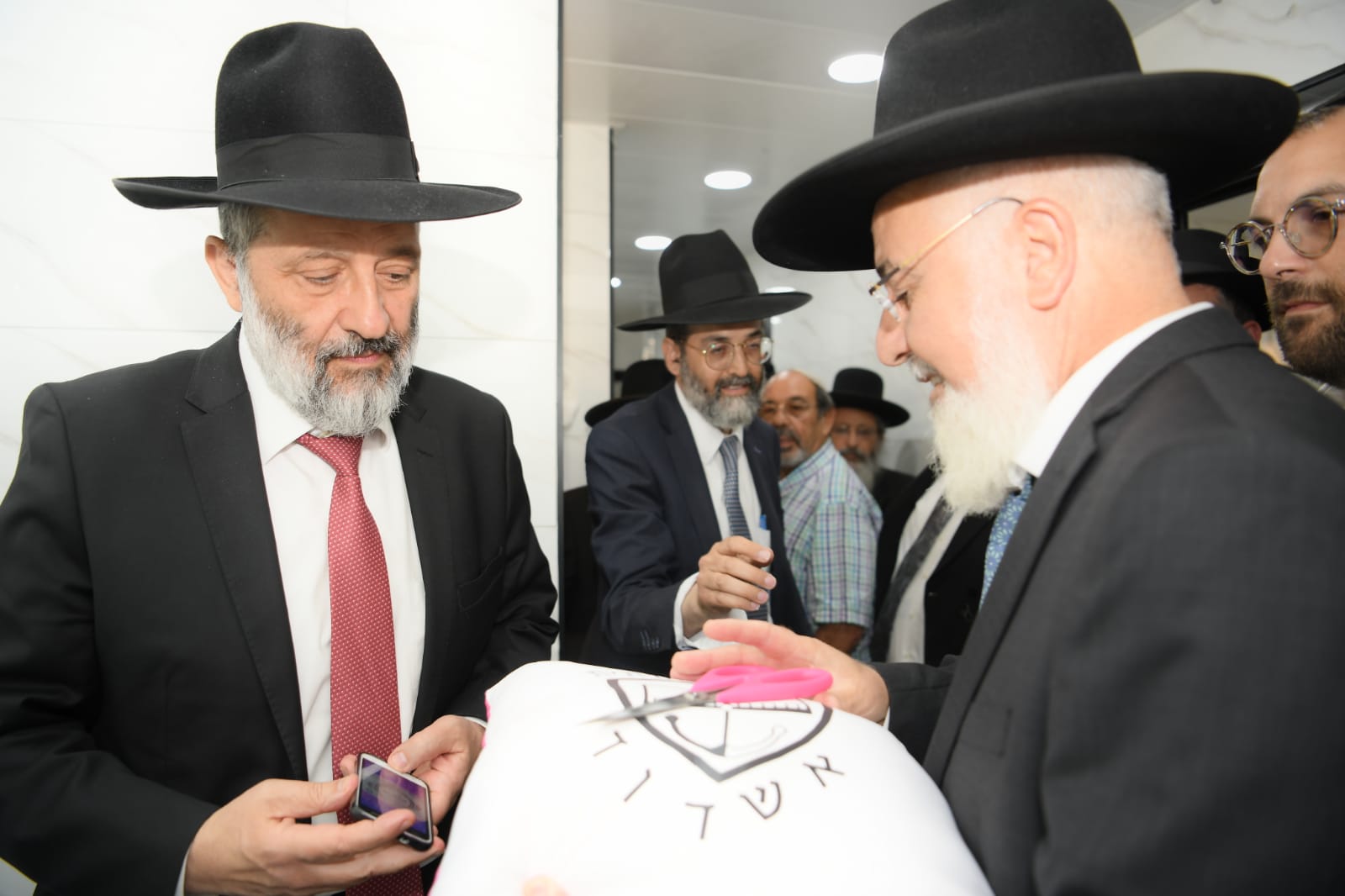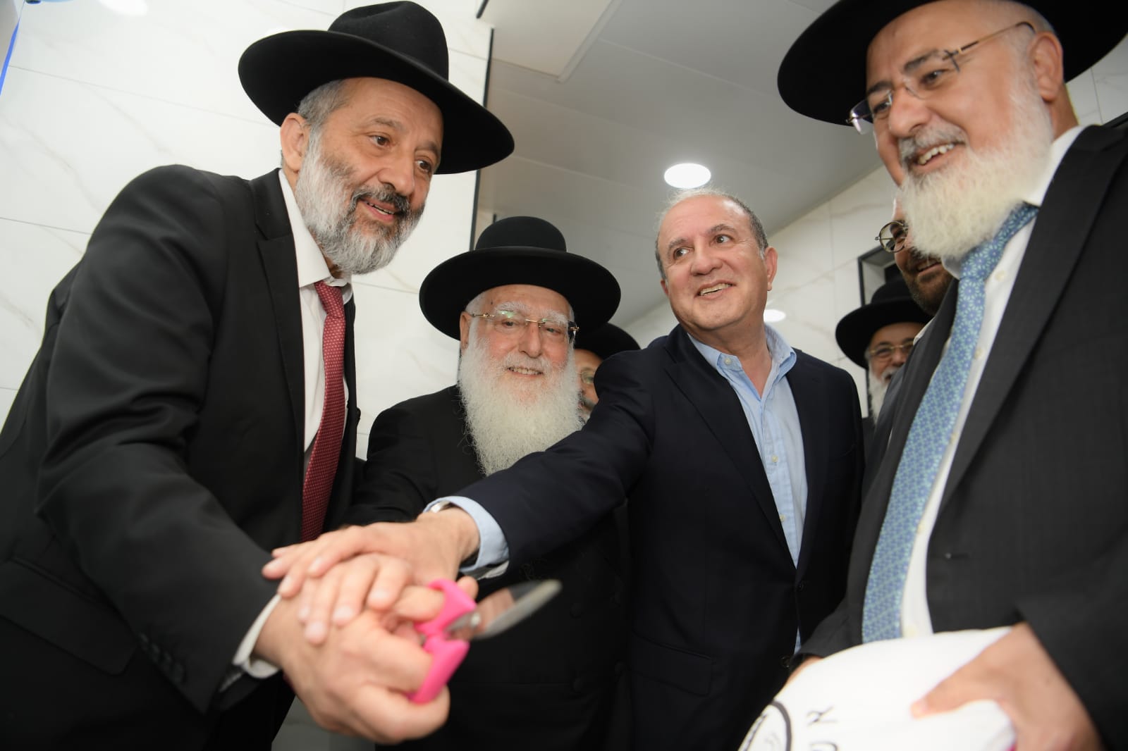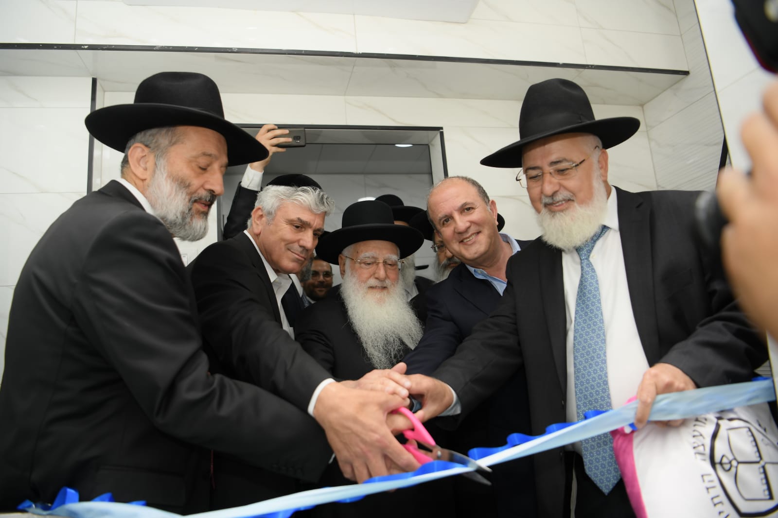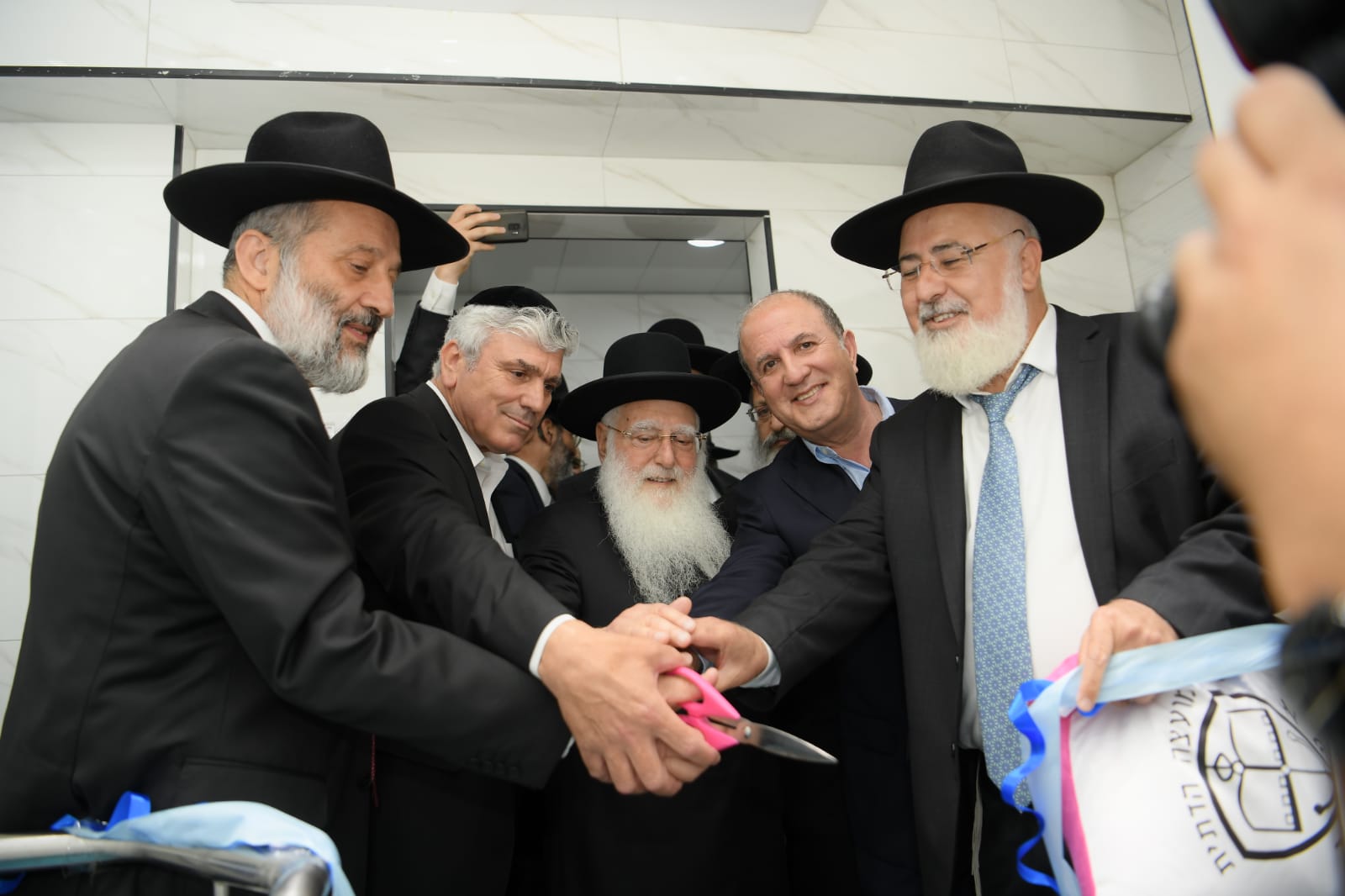 הרב אריה דרעי כובד בגזירת הסרט יחד עם הרבנים הראשיים וראש העיר עם ראש המועצה הדתית בשני המקוואות.