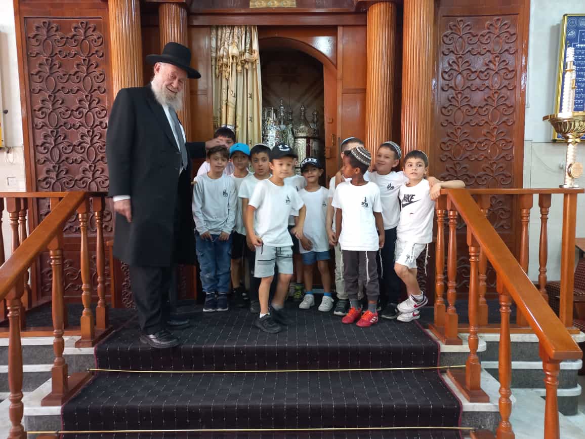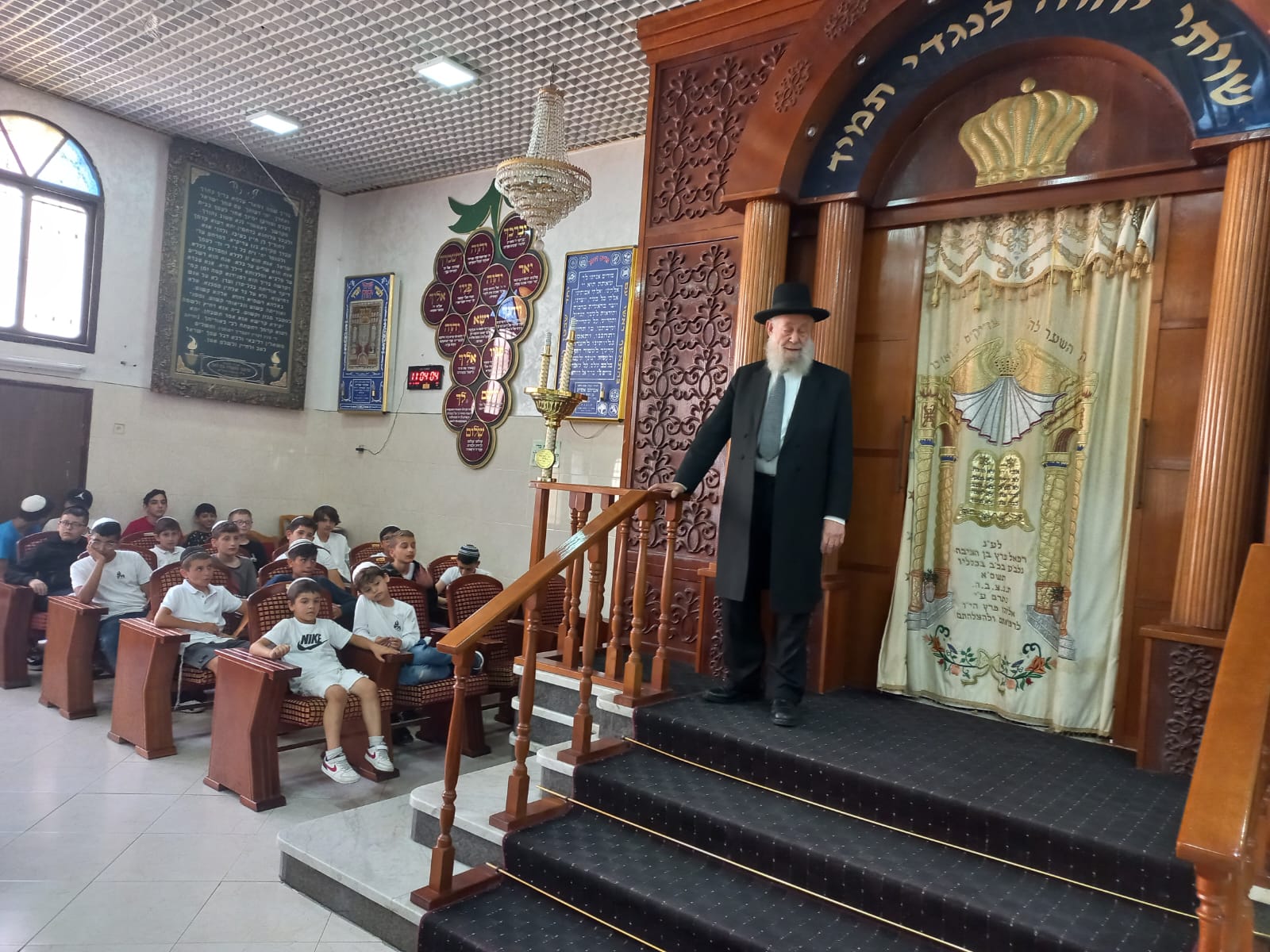 לסיום, בירך הרב את הילדים, והוא פתח בפניהם את ארון הקודש כאשר הילדים רואים את ספרי התורה והם עולים ומבקשים בקשות להצלחה בתורה....
