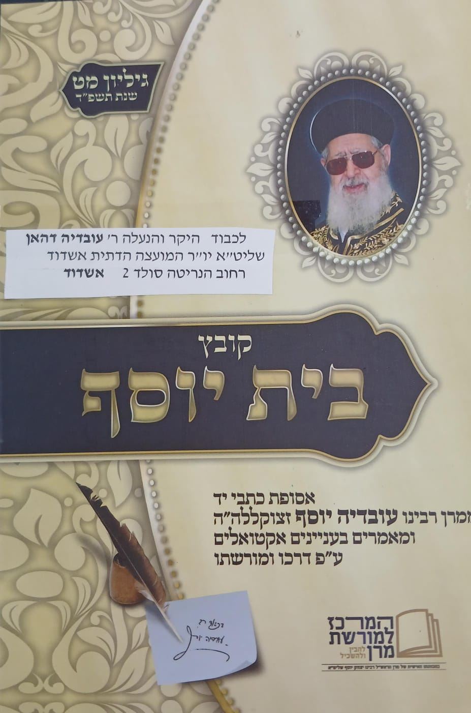 מרן הראשון לציון הגאון רבי יצחק יוסף שליט"א הרב הראשי לישראל שלח באופן מיוחד לרב עובדיה דהן יו"ר המועצה הדתית את הספר "קובץ בית יוסף" – אסופת כתבי יד נדירים המתפרסמים לראשונה, בספר זה שהוא כרך מט' מסדרת הספרים לזכותו של מרן רבינו עובדיה יוסף זצוק"ל לרגל ציון שנת העשור לזכרו.