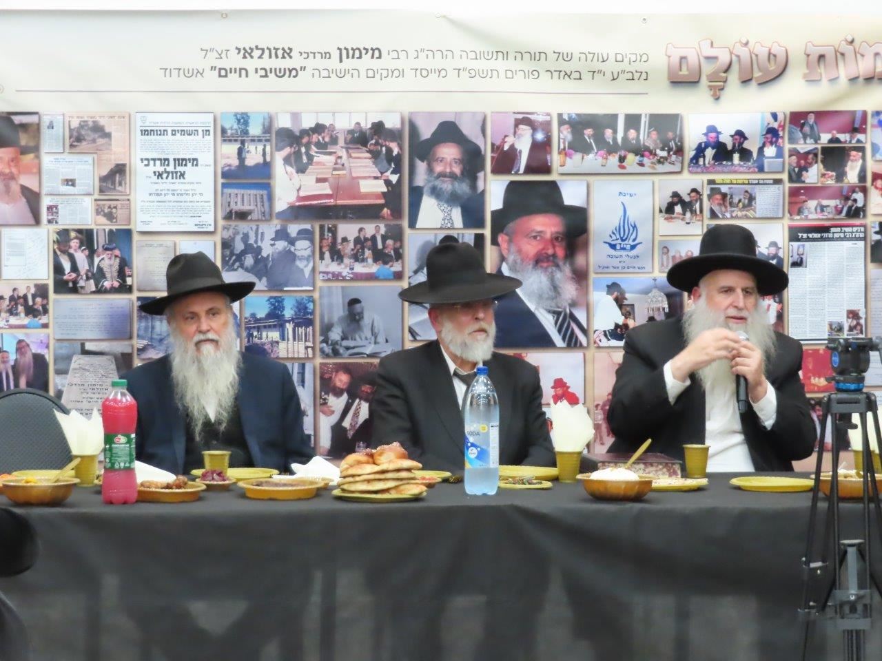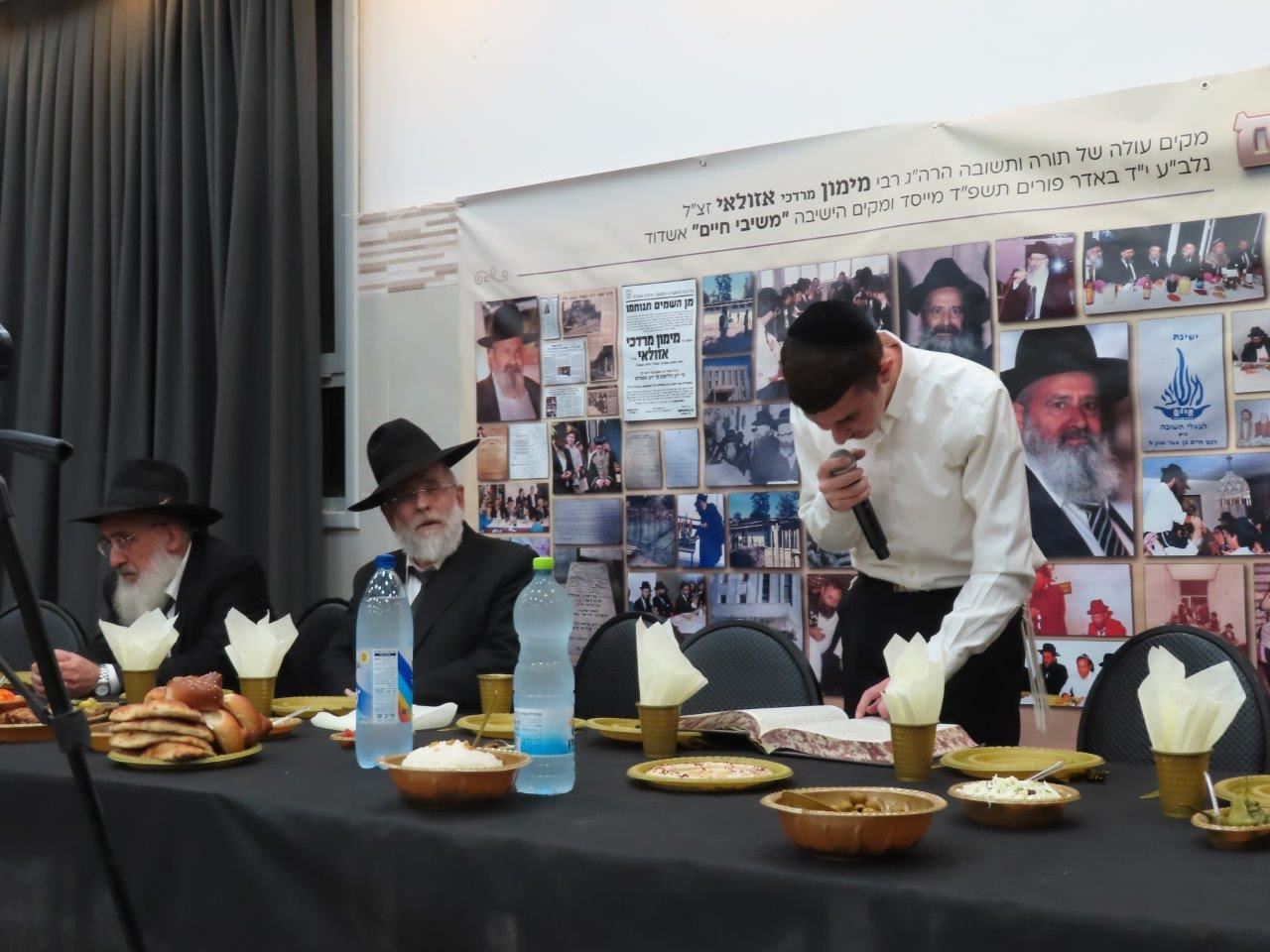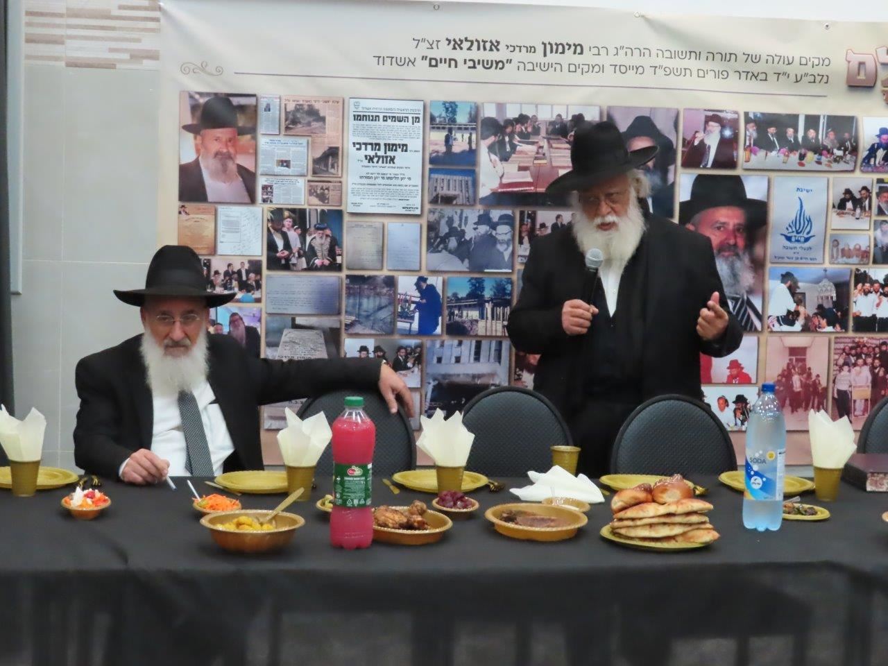 לאחר תפילת מנחה וערבית התקיימה סעודת מצוה, בקהל נראו תלמידים ותיקים שלמדו בישיבת "משיבי חיים" למעלה מארבעים שנה אשר עדיין מביעים את געגועיהם לאותה תקופה זוהרת של שיעורי התורה והקירוב רחוקים עם המהפכה הגדולה של תנועת התשובה שהקים רבי מימון אזולאי זצ"ל וכיום רבים מהילדים ונכדים של אותם תלמידים נמצאים בעולמה של תורה ומכהנים כרבנים ומרביצי תורה.