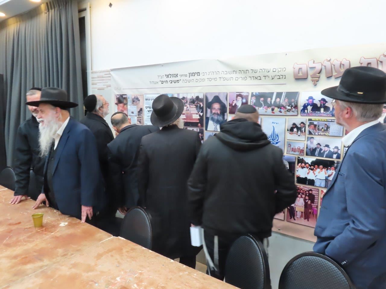 לצד שולחן הרבנים הוכנה פינה מיוחדת לזכרונה של ישיבת "משיבי חיים", מעוטרת בעשרות תמונות נדירות וישנות מאותה תקופה, כאשר הרבנים והמשתתפים הותיקים התרגשו להיזכר באותם רגעים מרגשים בפעילות הגדולה והענפה בתנועת התשובה הראשונה שהיתה לשם דבר, בפיהם של תושבי אשדוד בזכותו של מזכה הרבים הגדול רבי מימון אזולאי זצ"ל.