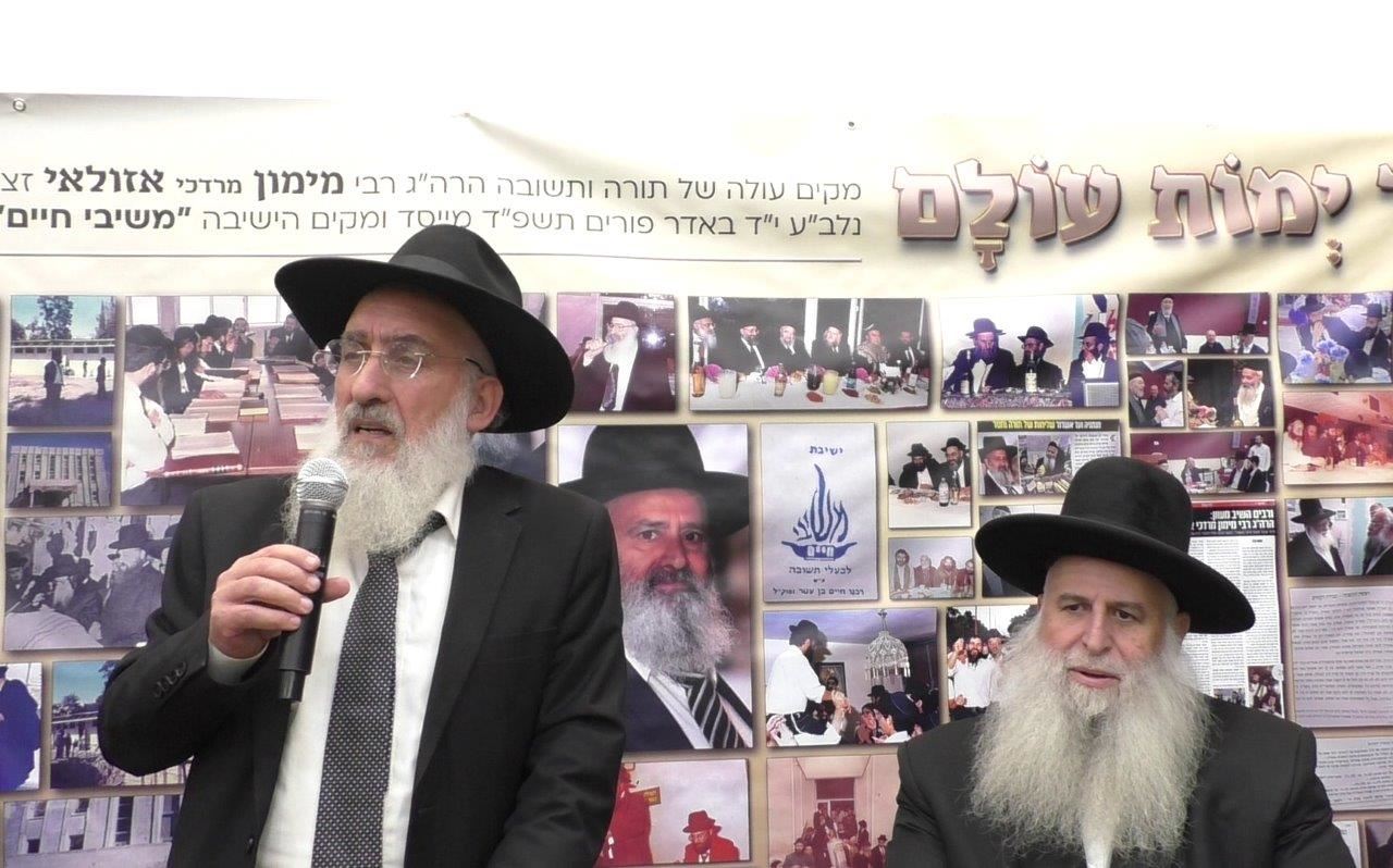 עם כלות יא' חודש להסתלקותו של אחד ממקימי עולם התשובה הראשון בעירנו, אשר לחם ועמד בפרץ למען הרבות תורה, מסר נפשו כל חייו לתורה ולגמילות חסדים, זכה לקרב יהודים רבים לאביהם שבשמים במאור פנים הרה"ג ר' מימון מרדכי אזולאי זצ"ל ראש ישיבת "משיבי חיים" ברובע ב', התקיים עצרת חיזוק והתעוררות באולם שע"י בית הכנסת "החיד"א" במעמד ראשי ישיבות ורבנים חשובים.