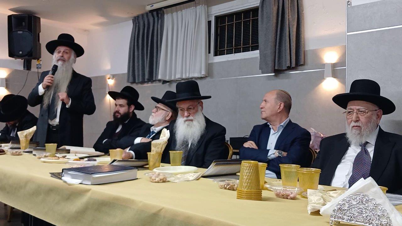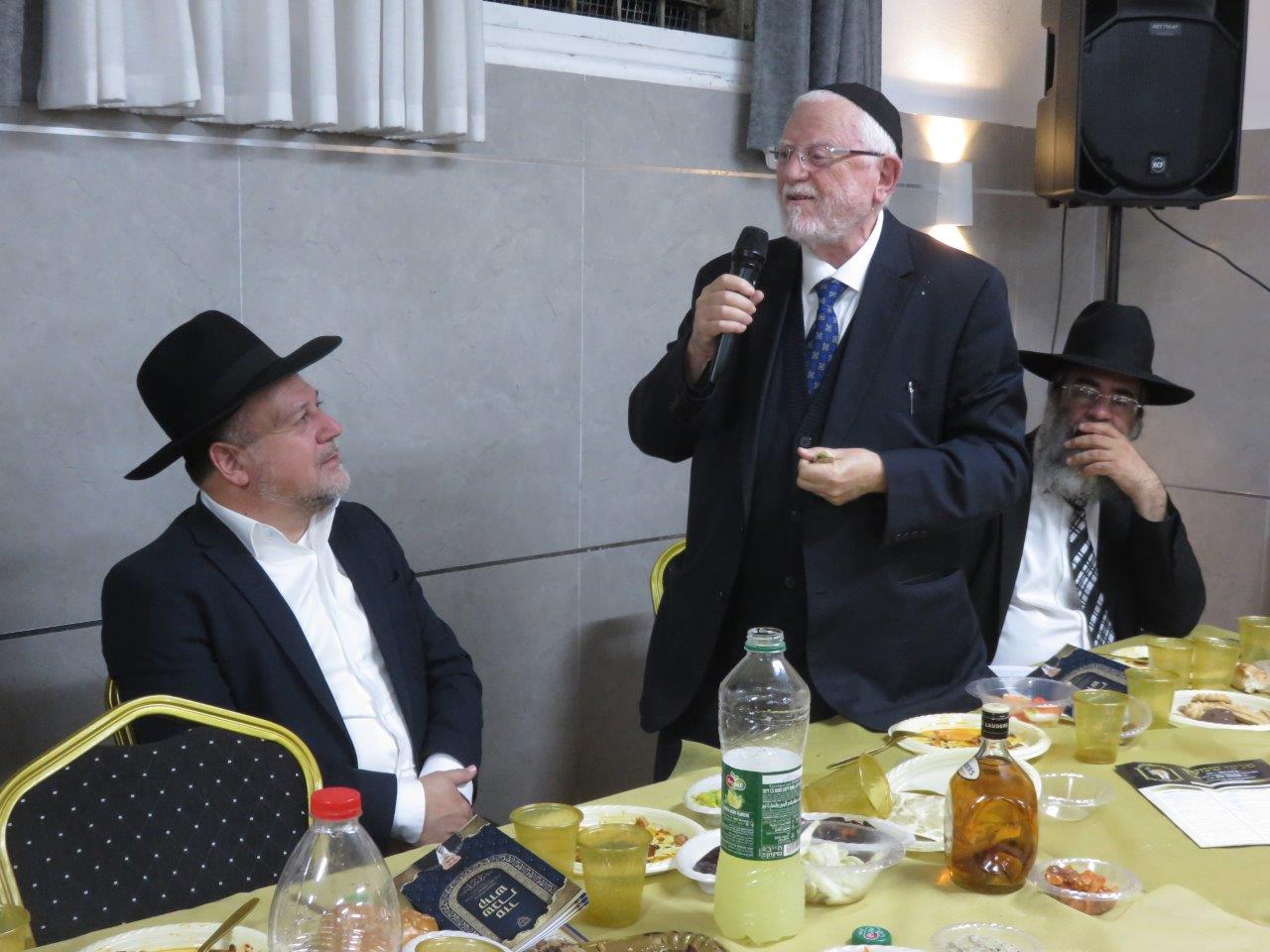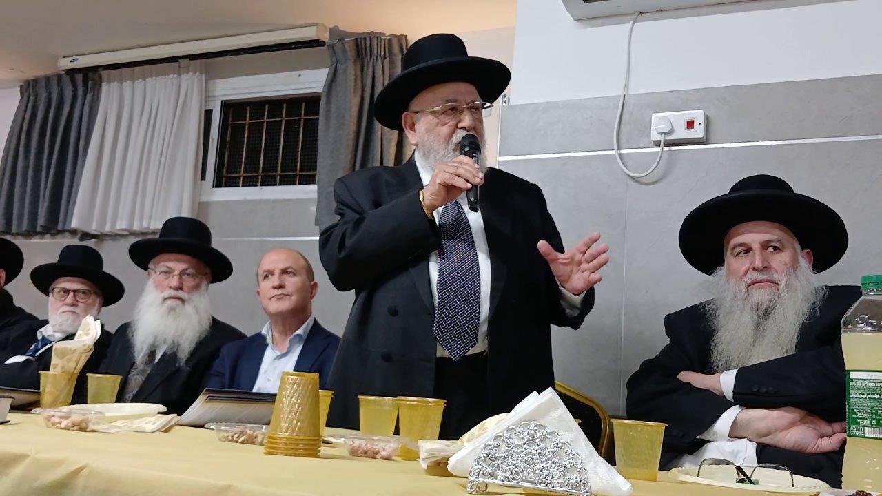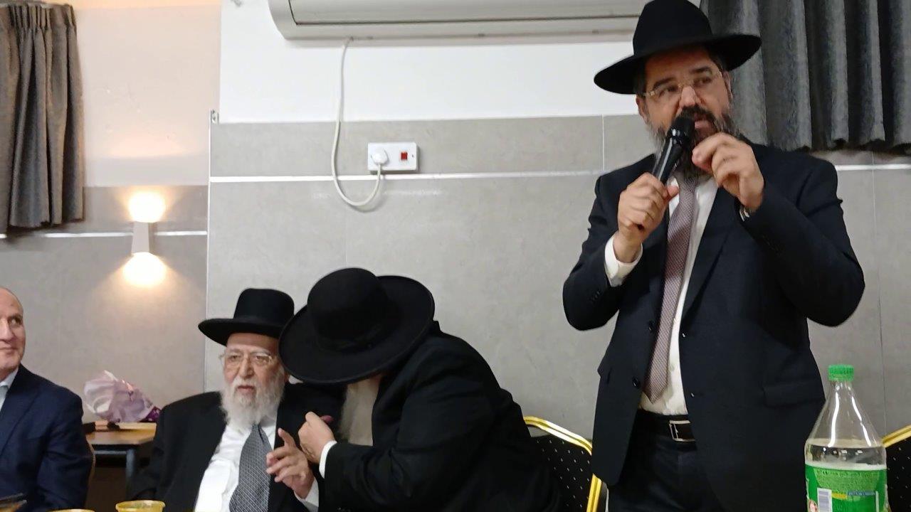 לאחר תפילת מנחה פתח את העצרת דודו הרה"ג רבי שלמה פרץ ראש מוסדות "הדרת יוסף".