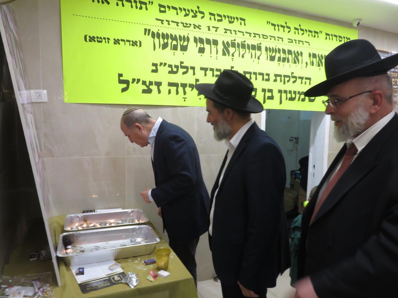 המוני המשתתפים הדליקו נרות באולם הכניסה לחדר האוכל, כמו כן חולקו למשתתפים