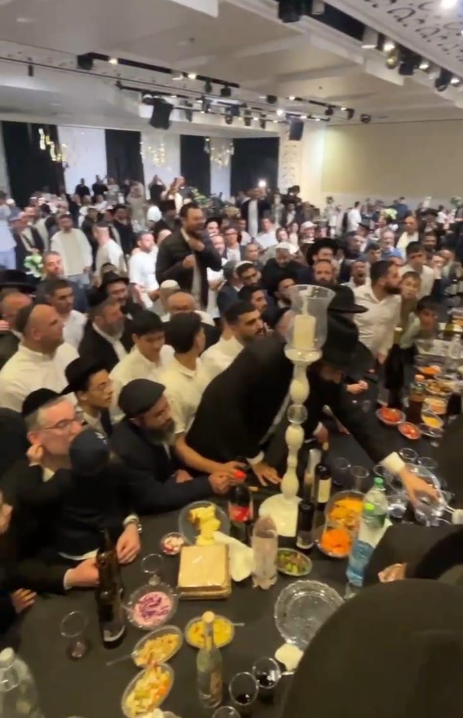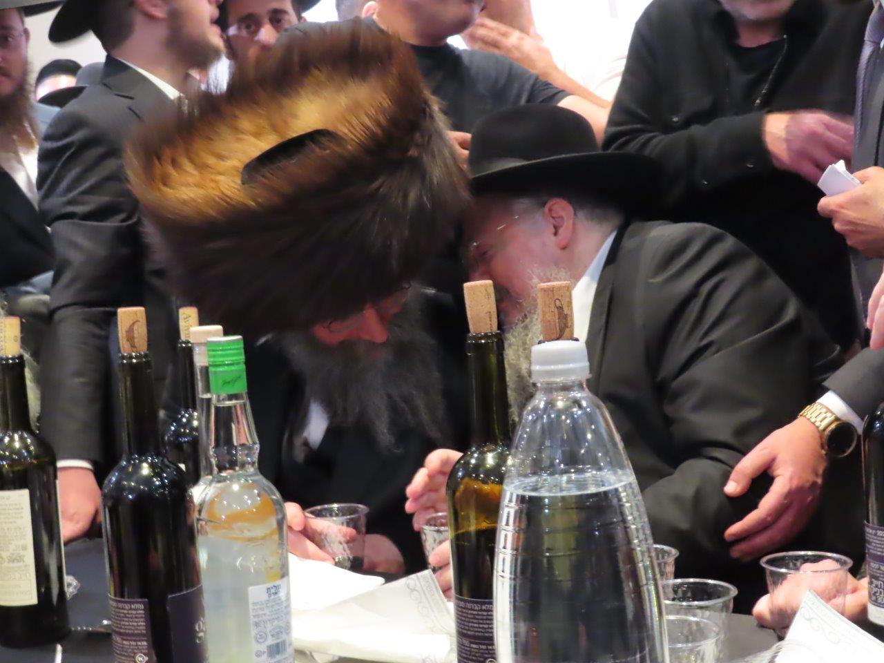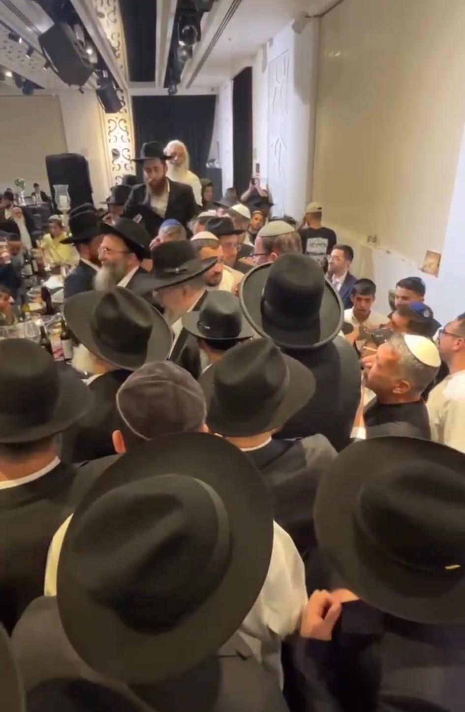 האדמו"ר הרה"צ רבי ישועה ורחמים אבוחצירא שליט"א מזג כוס של ברכה לאלפים הרבים ובירך כל העת את הקהל הרב שנהר כל הערב לשולחן המזרח.