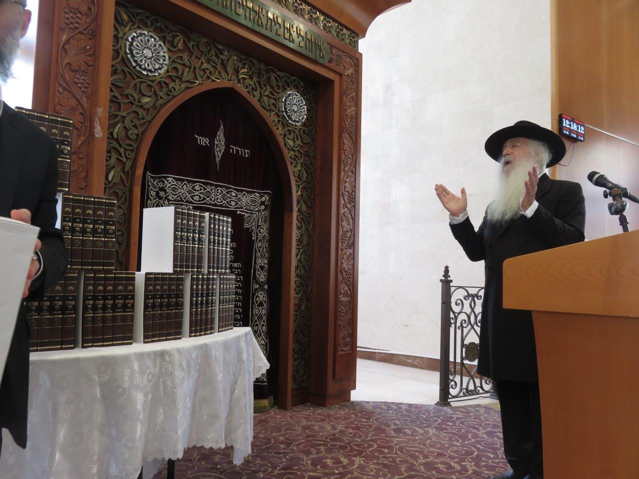 בסיום אמר קדיש לעילוי נשמתו ולאחר מכן חילק את סדרת הספרים "אוצרות דוד" לראשי הכוללים לראשי ורבני הישיבה.