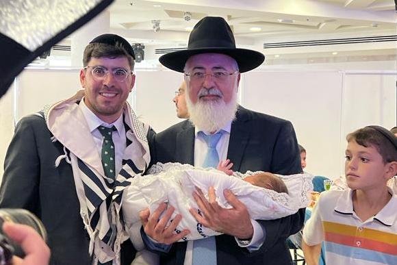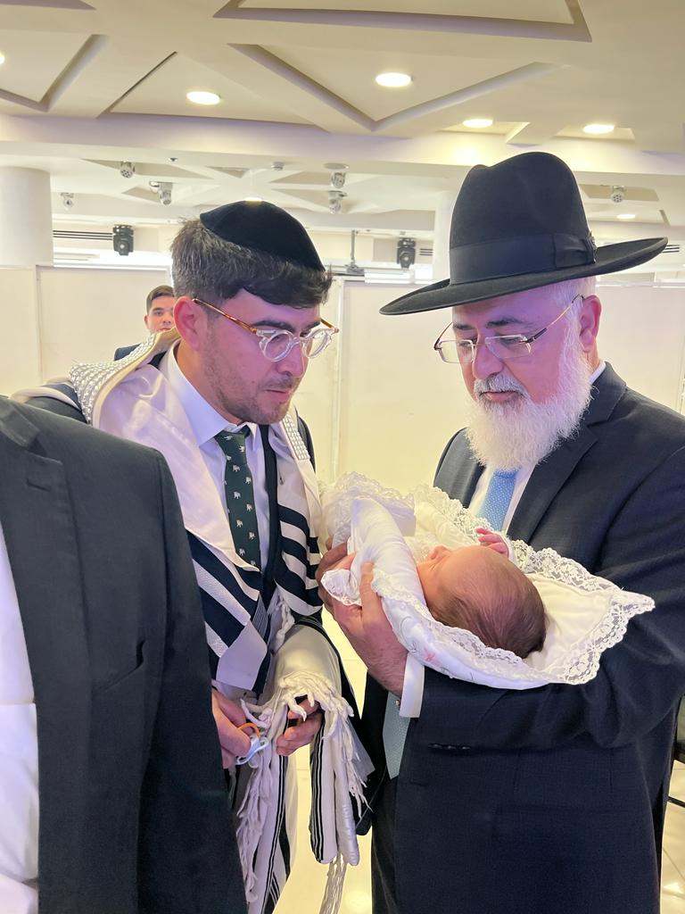 איש החסד ר' דניאל בוקובזה מנהל איחוד הצלה אשדוד חגג ברית מילה לבנו בהשתתפות רבנים ואישי ציבור * במהלך המעמד הגה"צ רבי שמעון גלאי מבני ברק בירך את הרב עובדיה דהן יו"ר המועצה הדתית