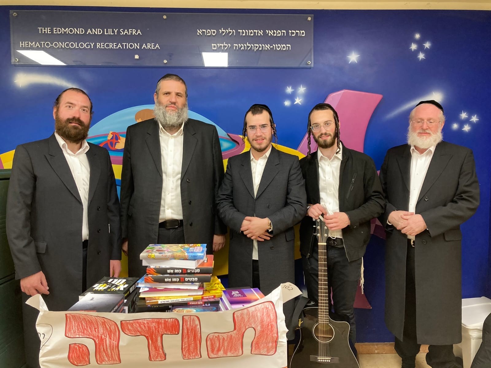 התרגשות במחלקה האונקולוגית ב'שיבא': מנכ"ל ספרי 'אור החיים' יחד עם מנכ"ל 'רחשי לב' העניקו ספרים לילדים, והבטיחו: תזכו לקרוא את כל ההמשכים