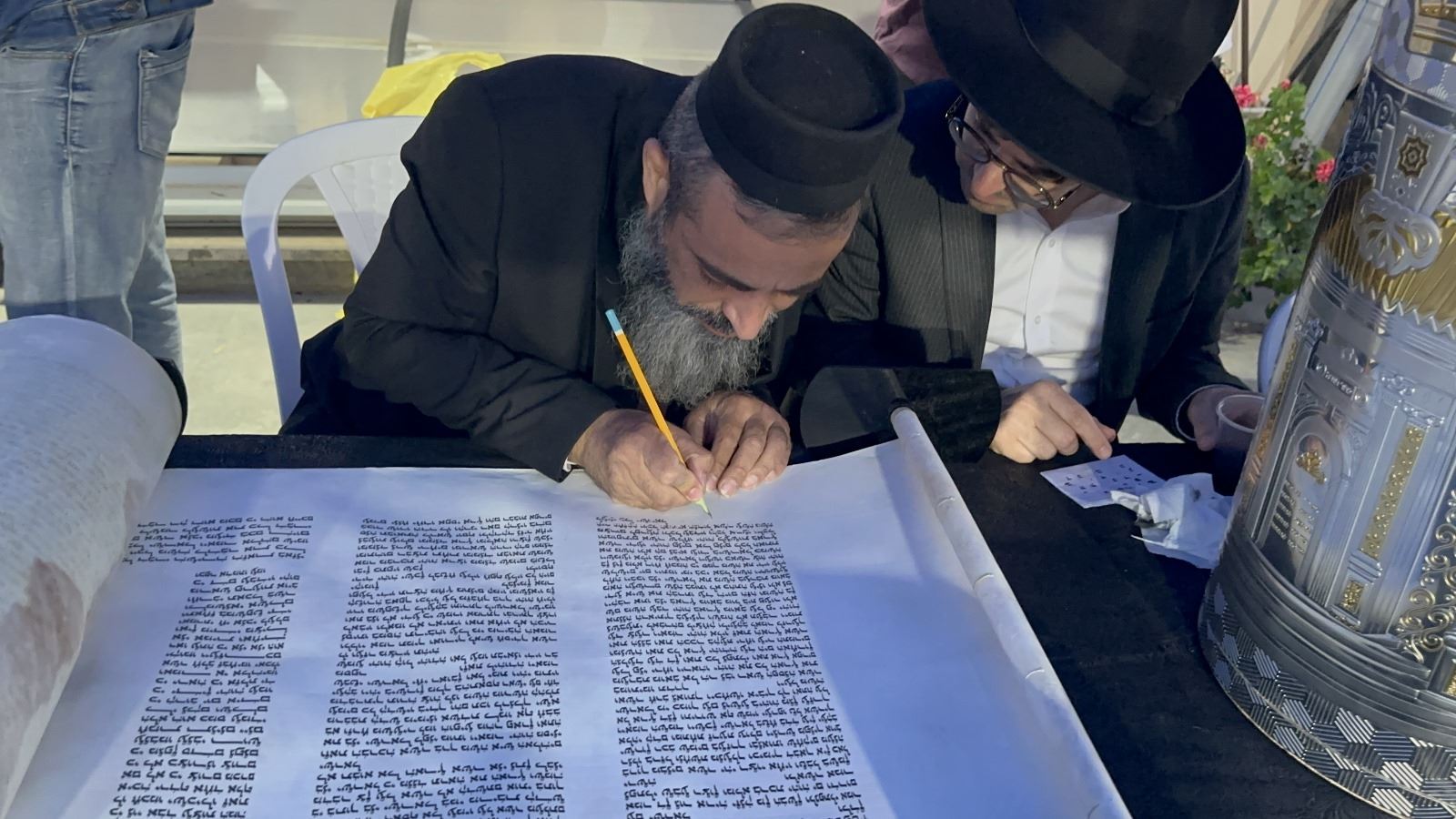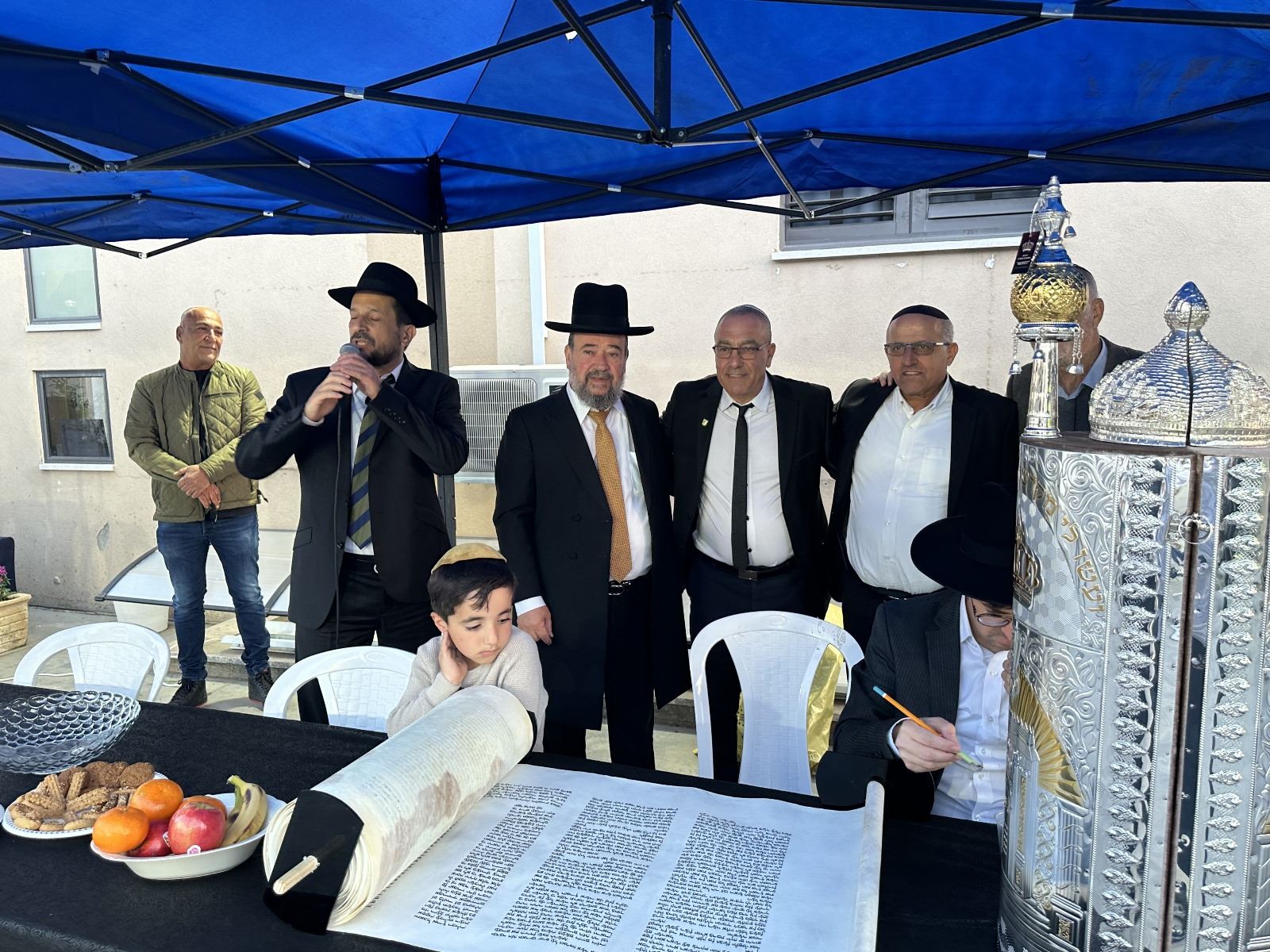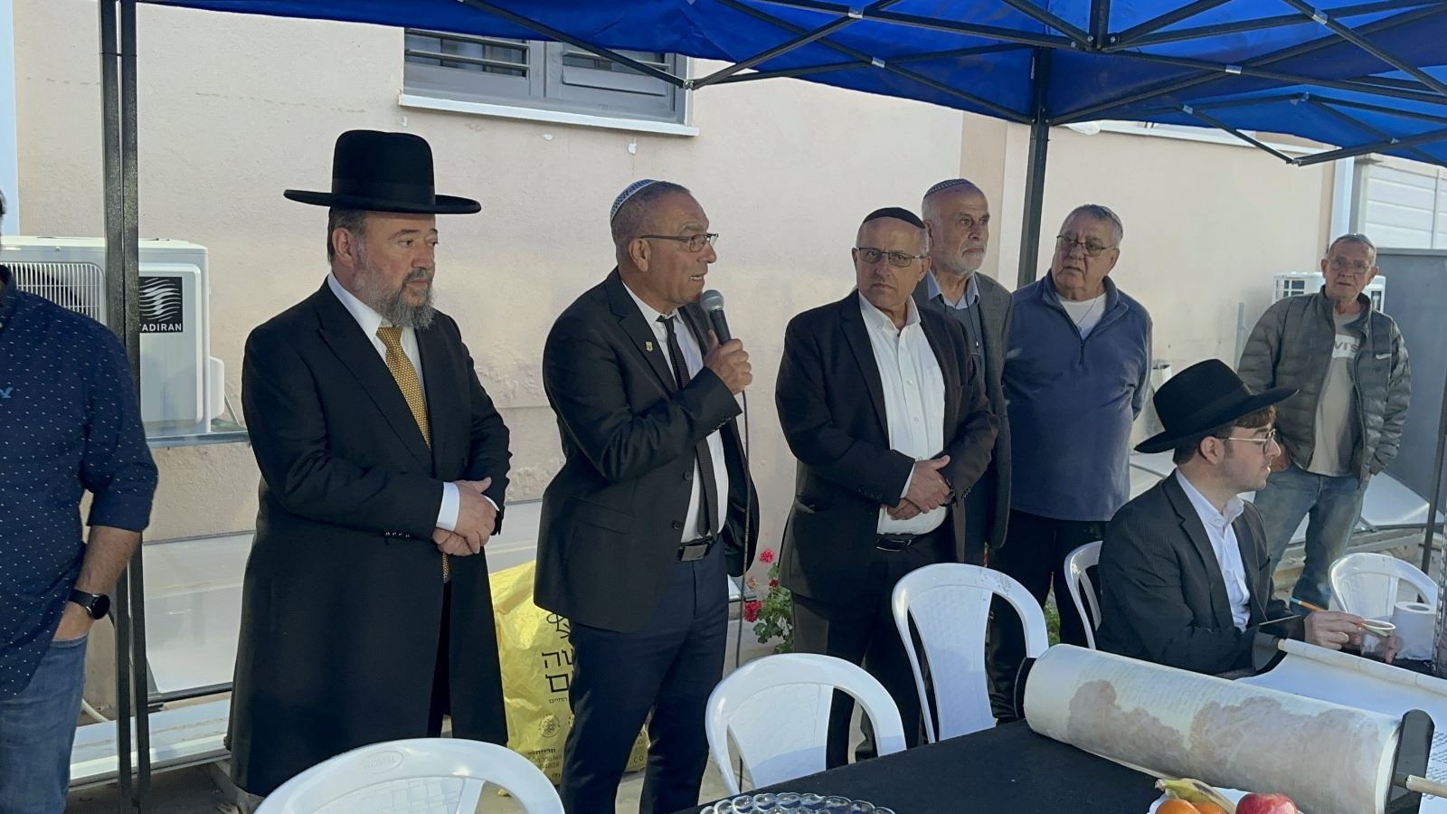 המעמד החל בשעות הצהריים בבית המרא דאתרא הגר"ד כהן שליט"א, לשם הגיעו רבנים ואישי ציבור חשובים ביניהם מר דרור אהרון ראש המועצה המקומית וסגניו, מר עוזיאל מנצור ממונה המועצה"ד וסגנו, ועדי בתי כנסת, משפחות הנרצחים ומשפחות החטופים ורבים מתושבי הישוב ומחוצה לו שהשתתפו בכתיבת האותיות האחרונות בספר התורה.