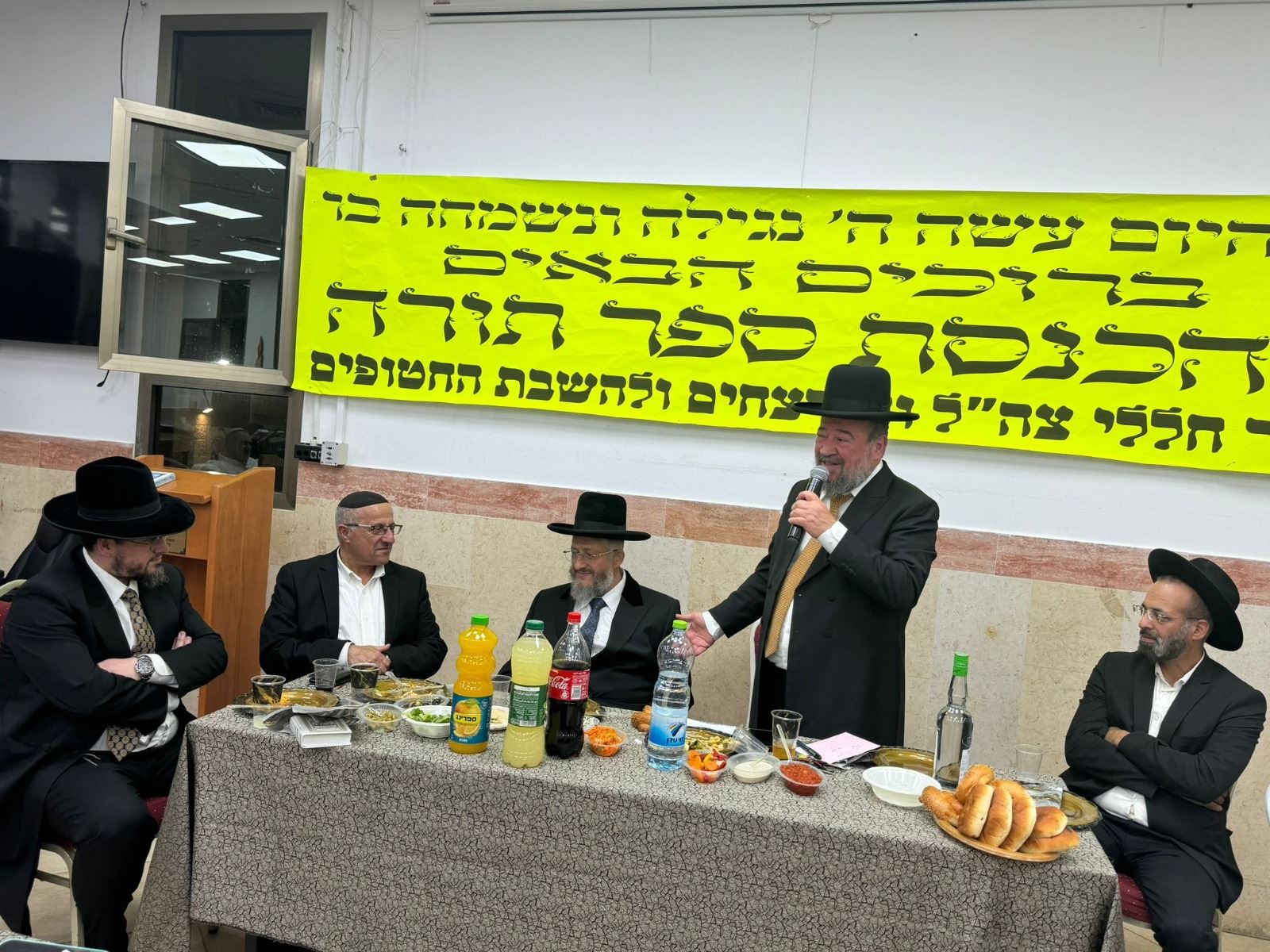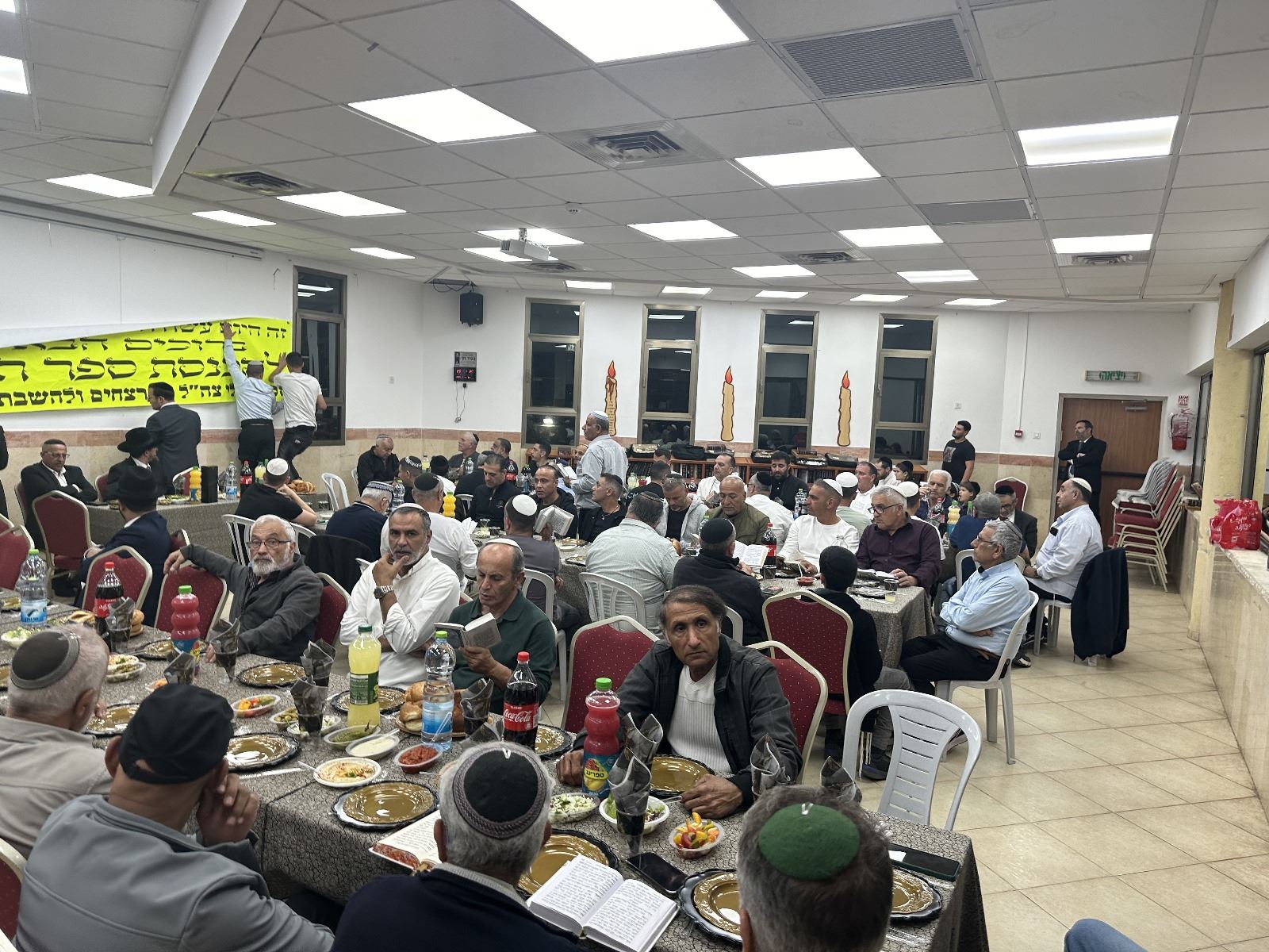 לאחר תפילת ערבית חגיגית, הציבור הרחב השתתף בסעודת מצוה מכובדת באולם הכולל בהשתתפות רבנים חשובים, בני משפחות הנרצחים והחיילים, משפחות החטופים וכלל הציבור הרחב.