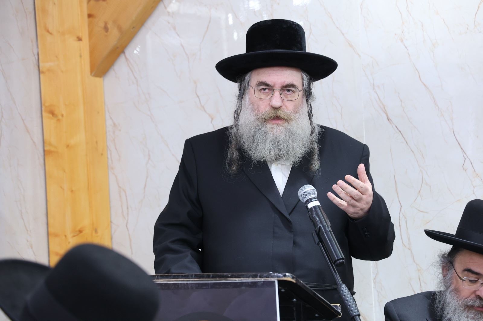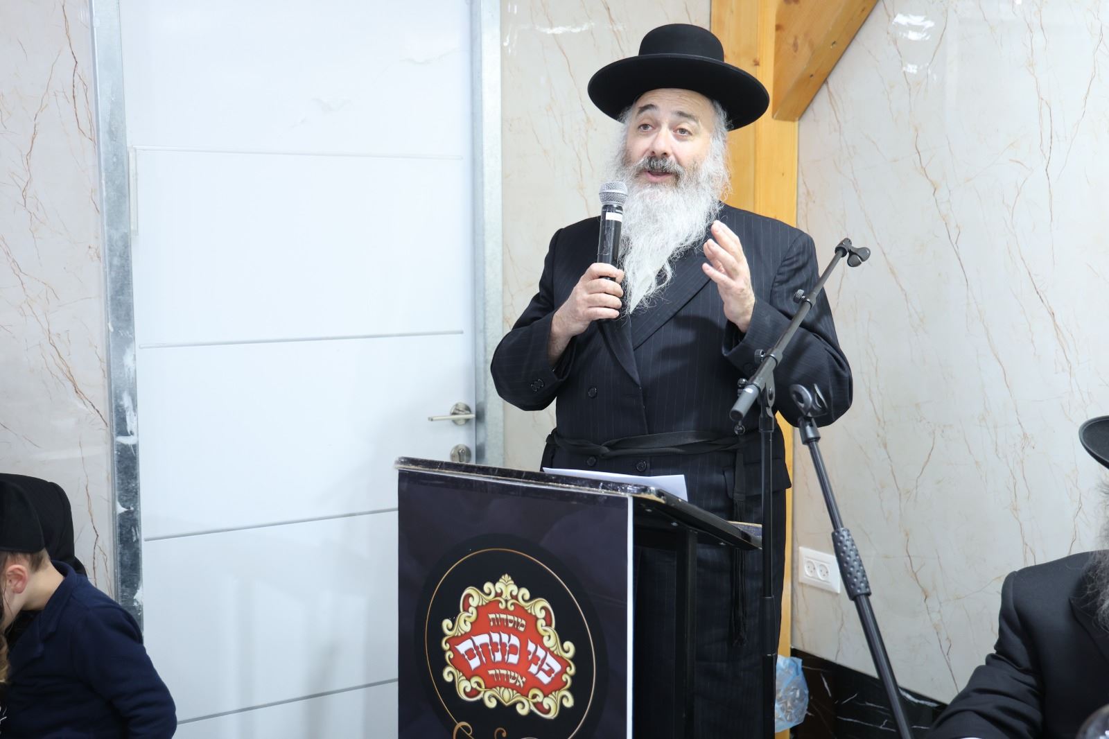 את המעמד פתח הרה"ג רבי אברהם מרדכי אלתר שליט"א, מחשובי מתפללי בית המדרש, שהזכיר את מכתבו של ראש הישיבה שנשלח לבני הקהילה בערב תשעה באב האחרון, אז נהרס מבנה בית המדרש בידיים זדוניות. "במכתבו כתב רבינו שגדולה תפילה לעני בשברון לב, יותר מבהיכל מחופה שיש. ואכן, זכינו להגיע למדריגה זו של 'שברון לב', ועתה זוכים לראות את ההמשך ב'תפילה בהיכל מחופה שיש". הוא הודה בדבריו לאברכי ביהח"ס שהקימו את בית המדרש בידיהם ממש, בכוחות משותפים ובאחדות הלבבות.