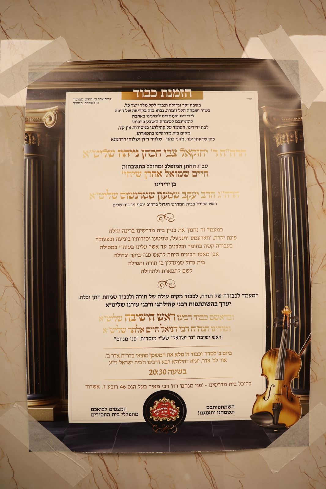 מעמד חנוכת הבית התקיים בבית המדרש שברח' בעל הנס באשדוד, והוא נערך בידי בני הקהילה בשיתוף שמחת השבע ברכות לבת מנהל המוסדות באשדוד, הרה"ח ר' יחזקאל הכהן נייהוז שיחי', וכן לרגל הילולת בעל ה'בית ישראל' זי"ע שחל ביום ב' אדר.