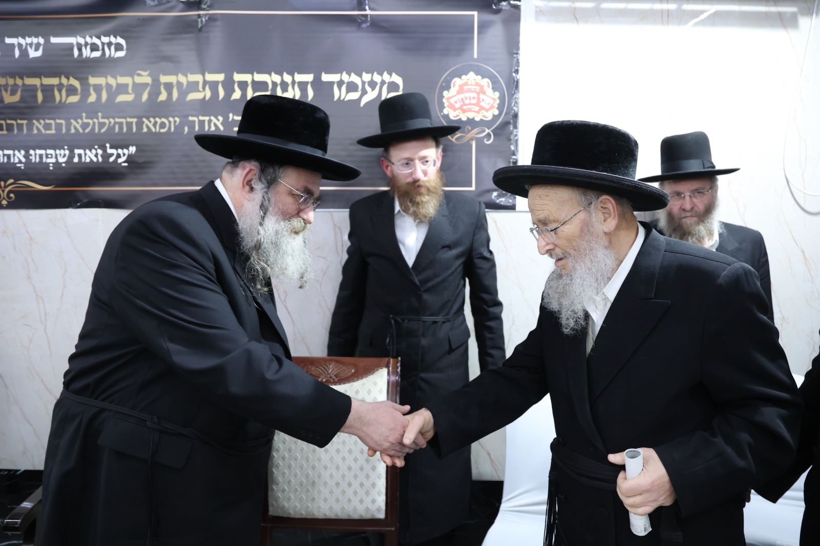 מנהל המוסדות, הרב יחזקאל הכהן נייהוז, הודה לתורמים שבזכותם הוקם בית המדרש. בסיום המעמד שורר הרה"ג ר' ישראל הלוי מנלה שליט"א פרקי "גראמען" בהם גולל את קורותיה של הקהילה באשדוד, שסבלה בראשית דרכה מקשיים רבים אך היום היא עולה כפורחת.
