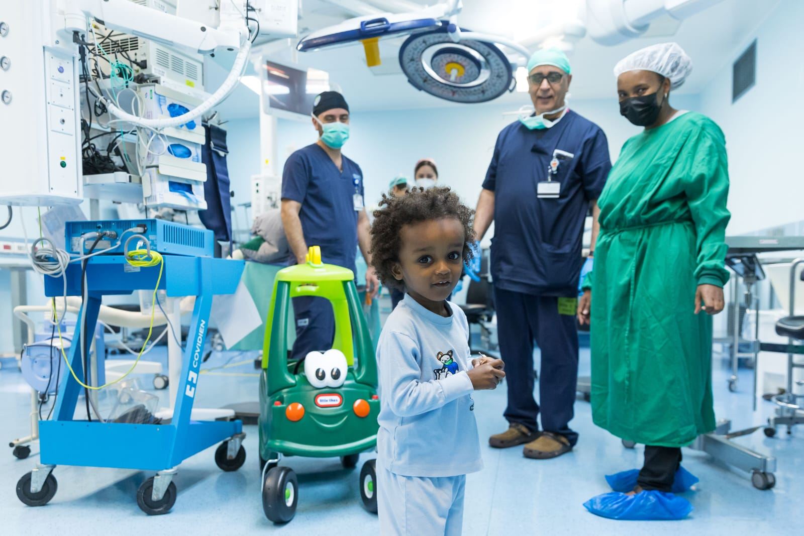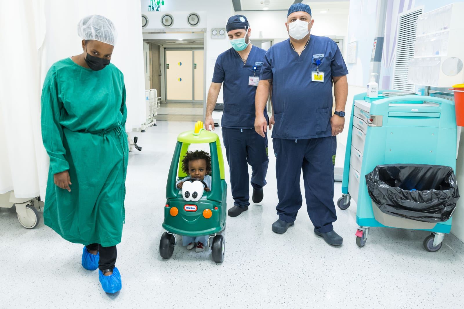 בתמונה ברוק אג'גו בן השנתיים וחצי תושב העיר אשדוד נכנס הבוקר (ד) לניתוח באסותא אשדוד, כשהוא רכוב על המכונית ובעיקר – עם חיוך מאוזן לאוזן.
