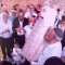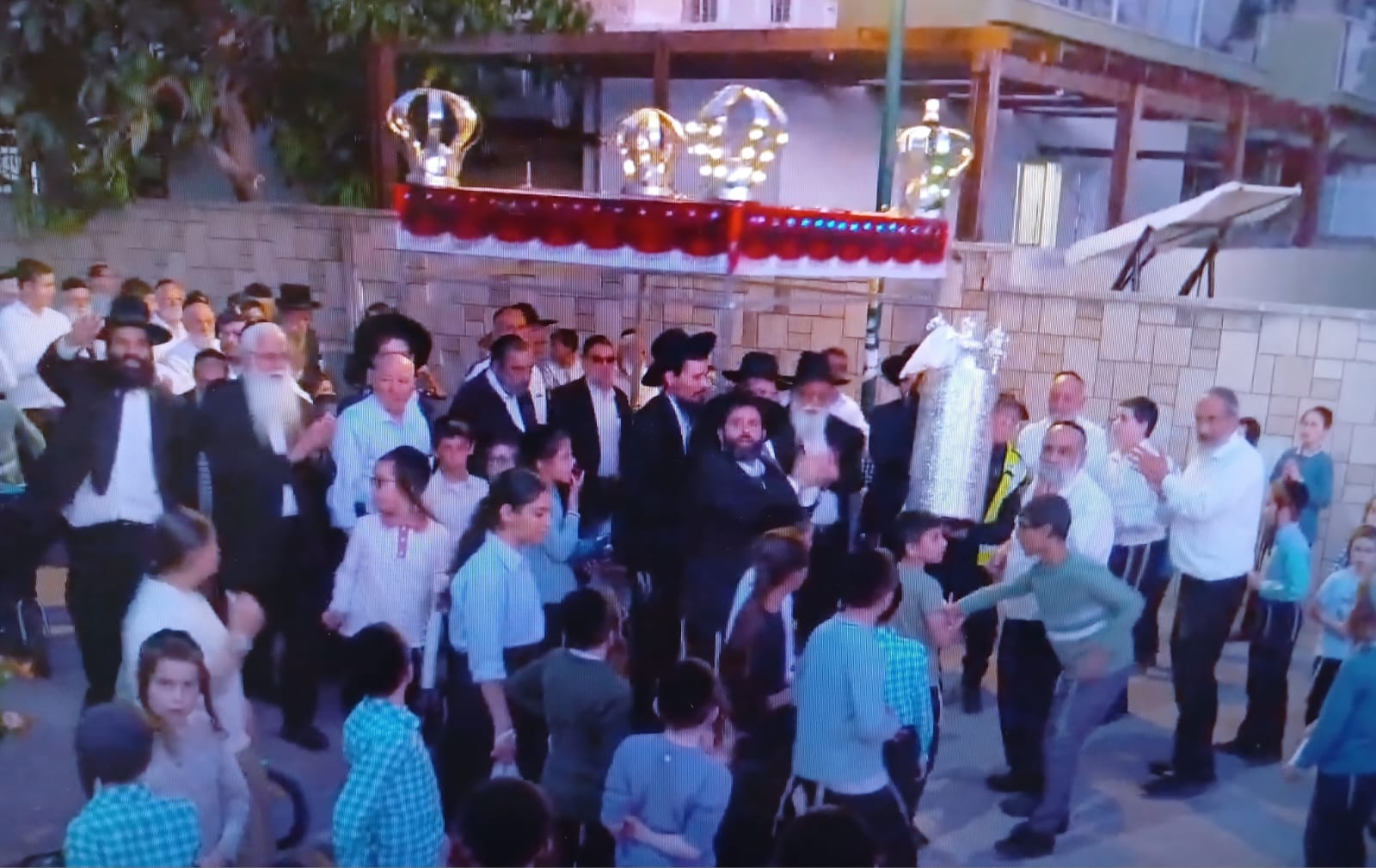 בשביל הסמוך לבית הכנסת, יצאו לקראתם המתפללים עם ספרי תורה בידיהם ופתחו במעגלים עד להכנסתם להיכל בבית הכנסת, ברוב עם.