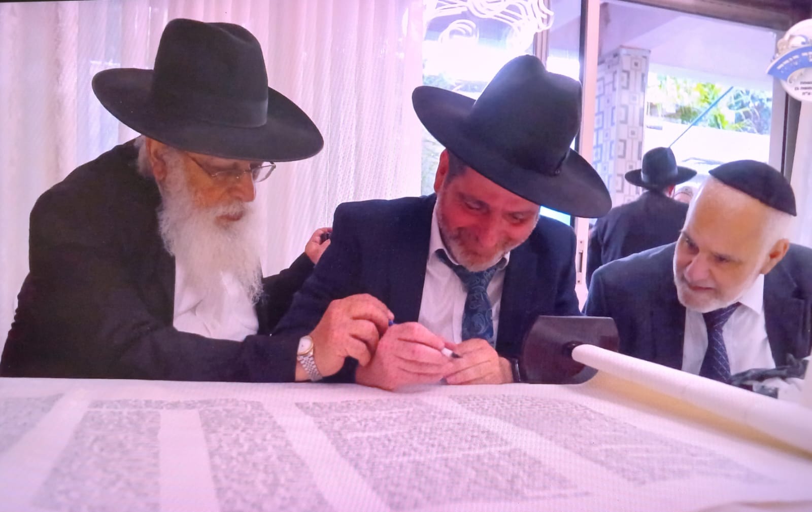 מעמד כתיבת האותיות התקיים בבית משפחת רחמים ברובע ז', כאשר את האותיות אחרונות כובד הגאון רבי מאיר כהן שליט"א רב ק"ק הריב"ז נשיא איחוד רבני הקהילות ובעל "אוצר ספרי הלכה".