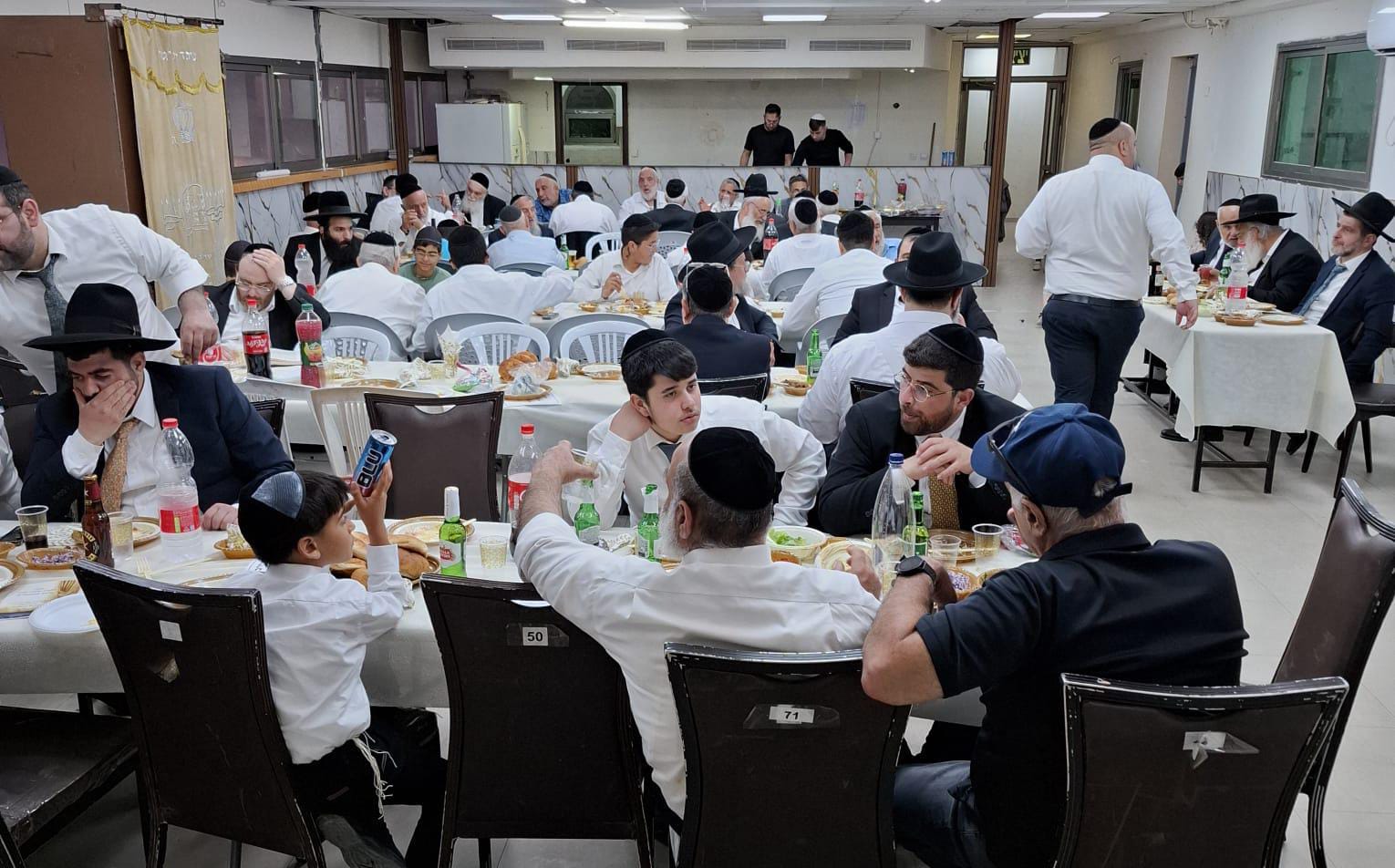 במעמד מרגש מיוחד נאמרו 'קבלת עול מלכות שמים' ע"י רב בית הכנסת הגר"מ כהן וכך הוכנסו ספרי התורה להיכל בזה אחר זה, לקול שירת ההמונים ב'מזמור לדוד' לאחר תפילת ערבית חגיגית, הקהל התאסף לסעודת מצוה מכובדת שהתקיימה באולם הגדול שע"י עזרת הנשים בקומה העליונה בבית הכנסת לכבודה של תורה.