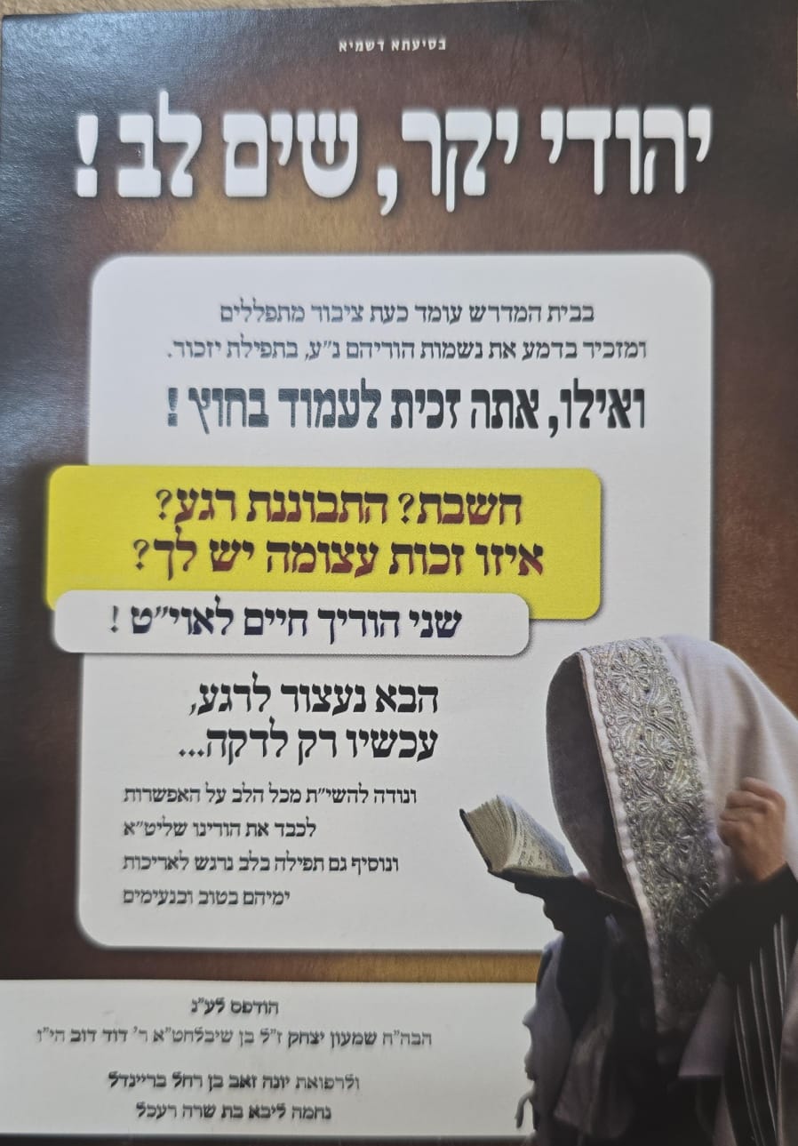 לעילוי נשמת הבן ז"ל: האב קרא ליוצאים ב'יזכור' להתפלל בעד הוריהם