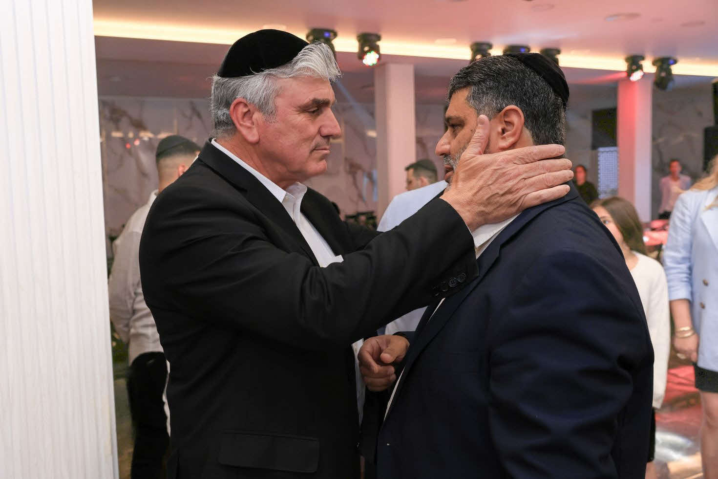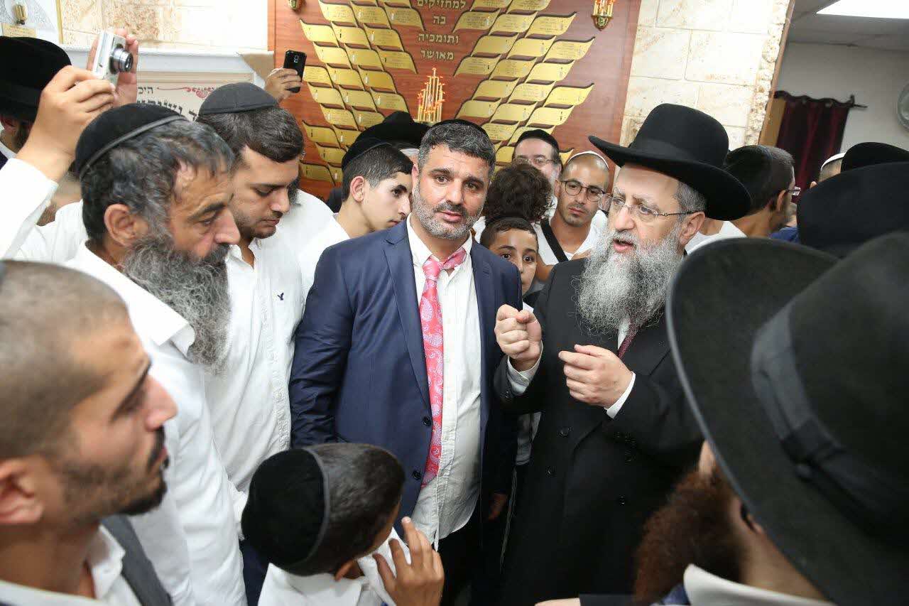 ציבור המתפללים ואורחים רבים ישבו והשתתפו בקידוש לרגל השמחה. בין הבאים הגיע יו"ר ש"ס ר' אבי אמסלם ממ"ק ראע"ה שהתקבל בברכה ע"י ציבור המתפללים.