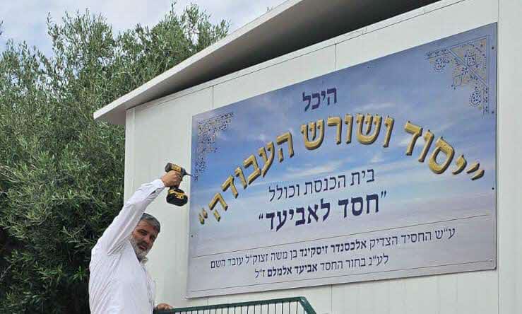 כפי שדיווחנו בהרחבה לפני שבוע בית הכנסת "יסוד ושורש העבודה-חסד לאביעד" הוקם לפני כחצי יובל שנים, כאשר להנחת אבן הפינה טרח והגיע במיוחד הרה"צ רבי יורם אברג'ל זצ"ל שבירך באותו מעמד את כל המשתתפים והמסייעים בהקמת בית מקדש מעט זה. ואכן תוך זמן קצר נבנה בית הכנסת בקראוון סמוך לגינה.