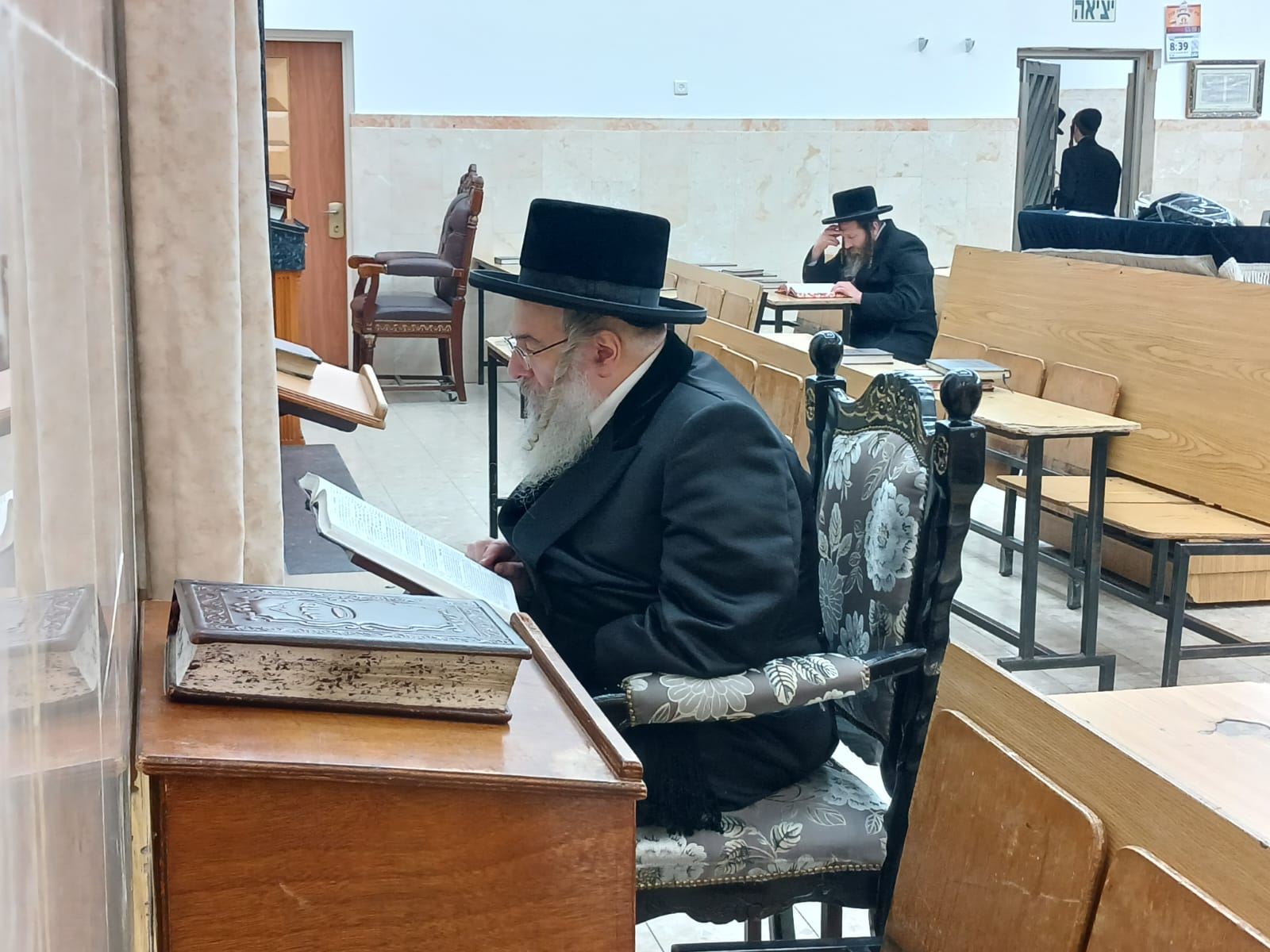 האדמו"ר שליט"א עורך את תפילותיו בימים אלו ששוהה בארץ הקודש בבית המדרש טשארנאביל ברובע ז'.