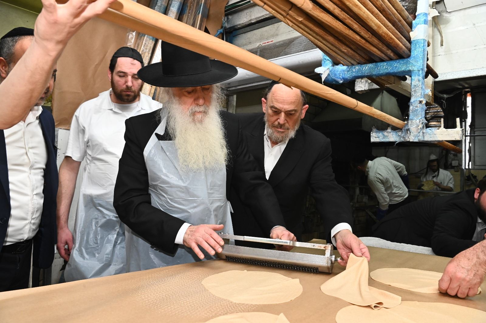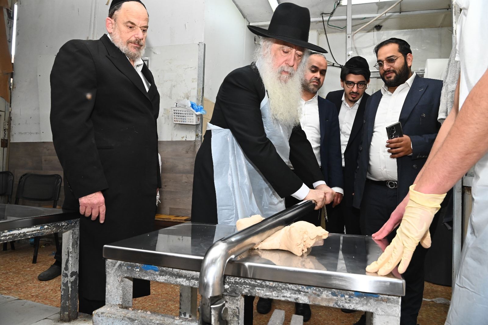 האדמו"ר הגה"צ רבי דוד חניה פינטו שליט"א נשיא ממלכת התורה "אורות חיים ומשה" הגיע לאפות מצו במאפית מצות טיב המצות בבני ברק בבעלותו של ר' ארי קורניצר.