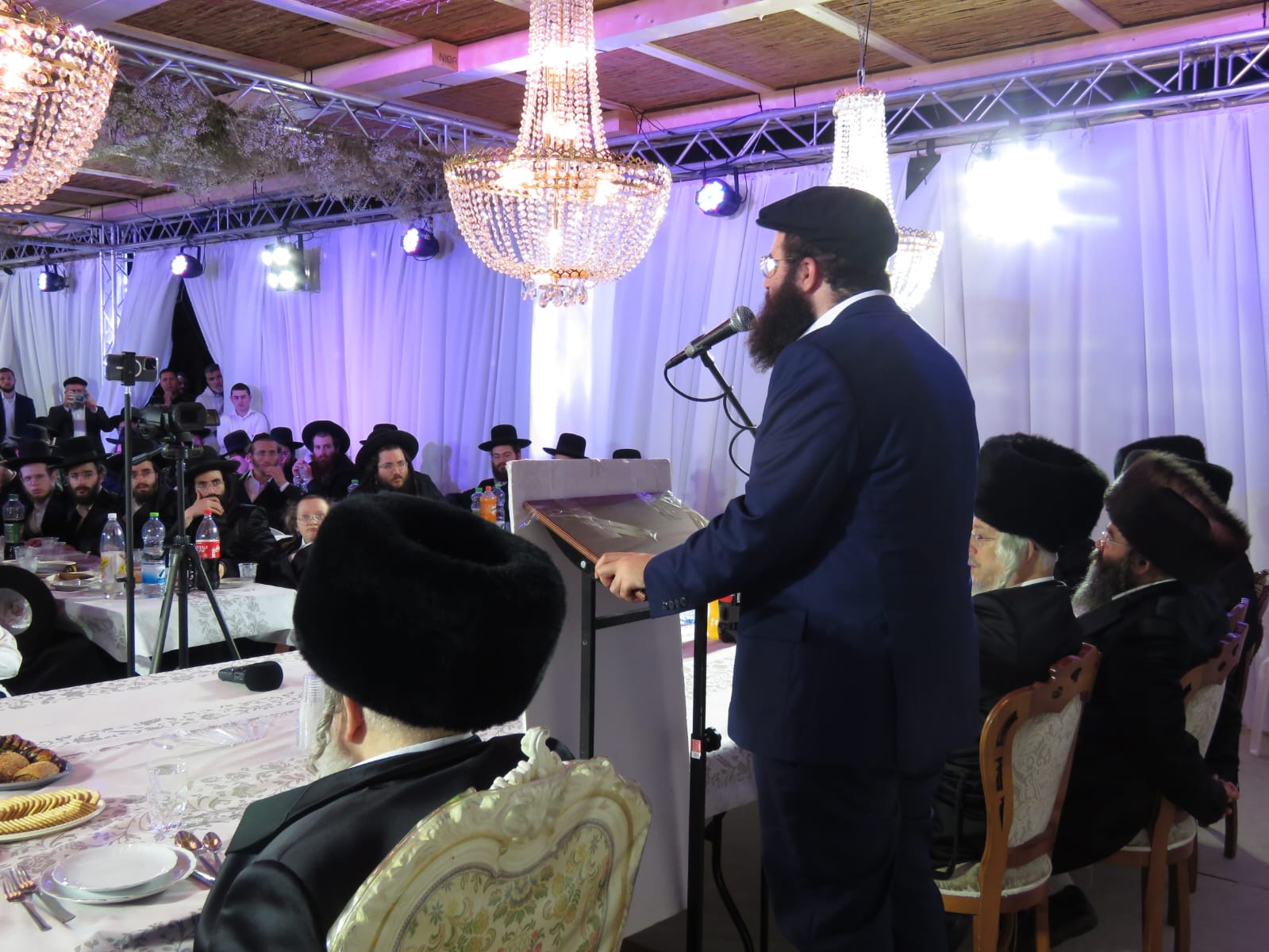 בתחילת המעמד כיבד בהשתתפותו המארח הרב יואל משה פינטו שליט"א בן האדמו"ר רבי יאשיהו שליט"א שהעניקו את בית מדרשם והסוכה המפוארת למען הבחורים בעין יפה ורוח נדיבה ונשא דברי חיזוק באמונה בחשיבותם של המועדים בכלל וחג הסוכות בפרט ועמידה בנסיונות בגבורה ובתמימות.