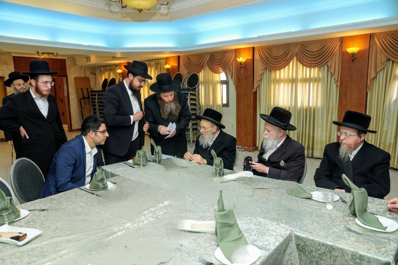 לקראת חג הפסח: הנהלת רשת 'שפע ברכת השם' עלתה למכור את החמץ ולהתברך במעונם של רבני אשדוד* ■ במהלך הביקור בירכו ועודדו הרבנים את התפתחות הסניף הגדול של הרשת בעיר שמביא רווחה גדולה וחיסכון לציבור החרדי: "הבאתם שפע ורווחה"