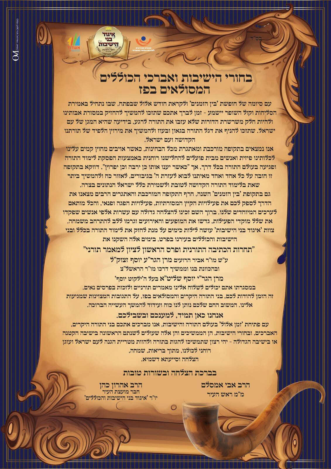 דברי תורה צריכים חזיוק: ביוזמת ממ"ק רה"ע ר' אבי אמסלם וחבר המועצה ר' אהרן כהן יו"ר 'איגוד בני הישיבות' הוכרז על תחרות חיבורים תורניים לזכרו ולעילוי נשמתו של גאון הדור, מרן רבי עובדיה יוסף זצ"ל.