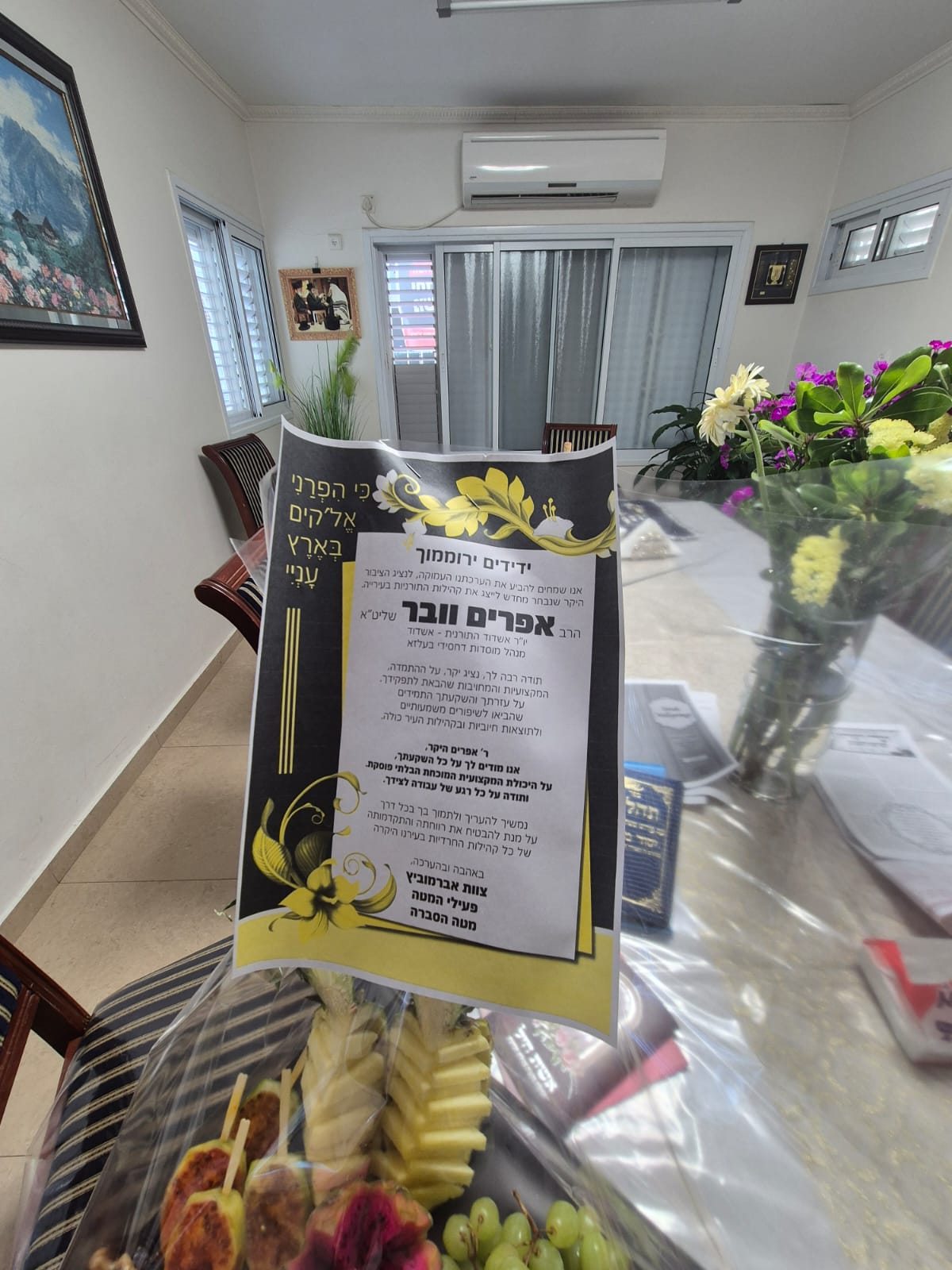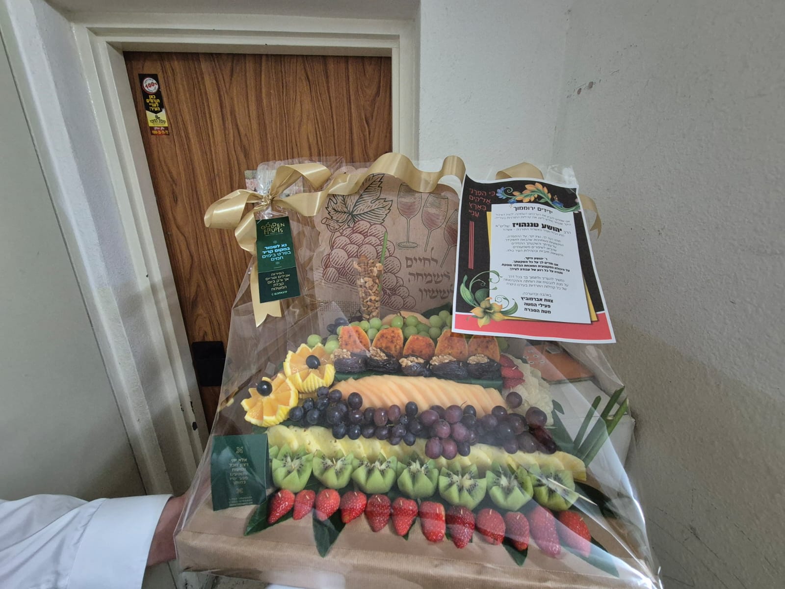 הפתעה לנציגים שהוכיחו: בערב שבת הפתיעו פעילי "אשדוד התורנית" את הנציגים הרב וובר והרב טננהויז במארזי פירות מעוצבים שהגיעו לבתיהם.