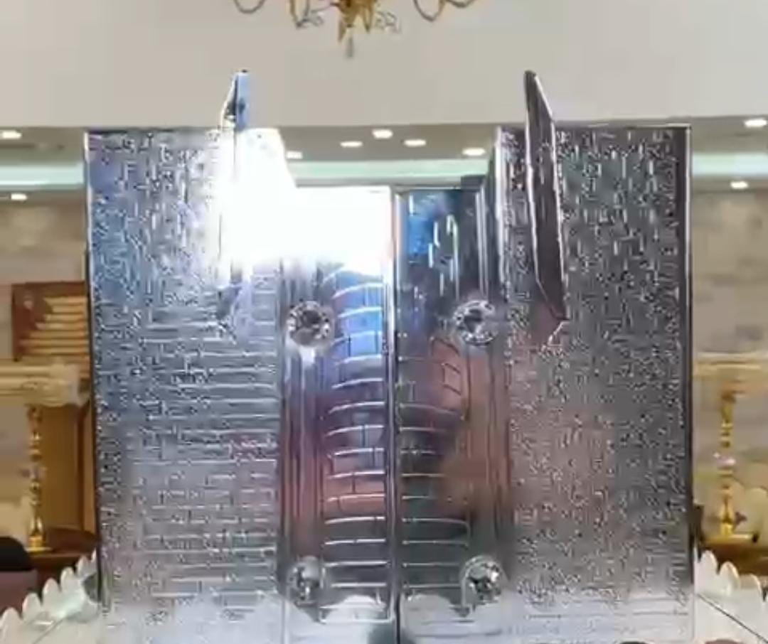 בביה"כ "תפארת רפאל" הציגו השבוע את ספר התורה המפואר שיוכנס בשבוע הבא לביה"כ. בראש הספר: דגם מרהיב עין של מבנה בית הכנסת