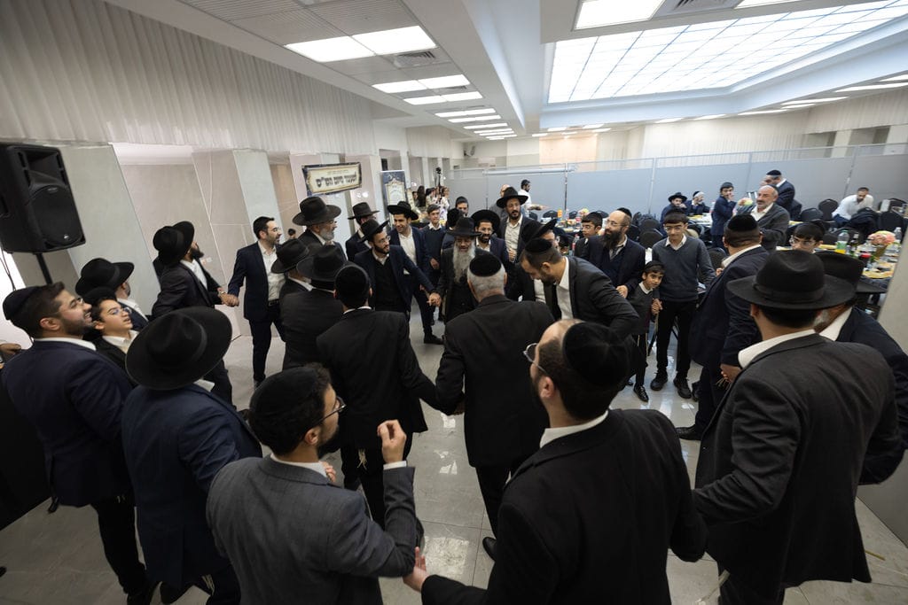 הציבור היסב לסעודת מצוה סביב שולחנות ערוכים כיאה לסעודה מצוה.