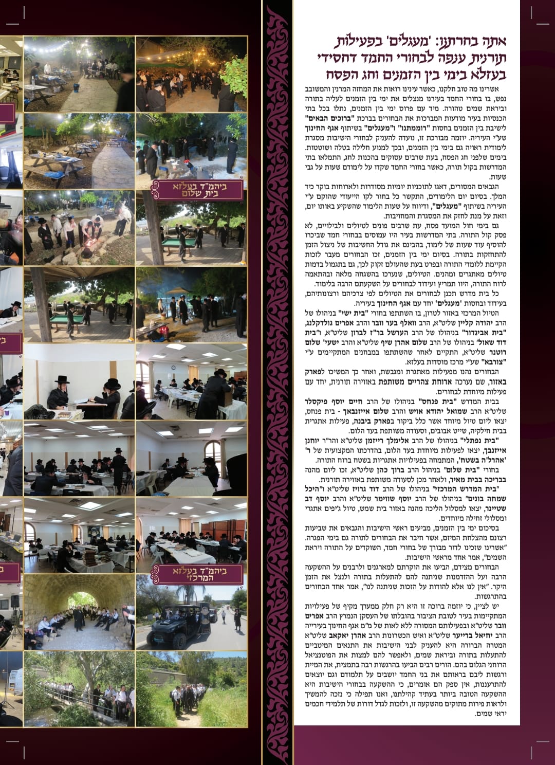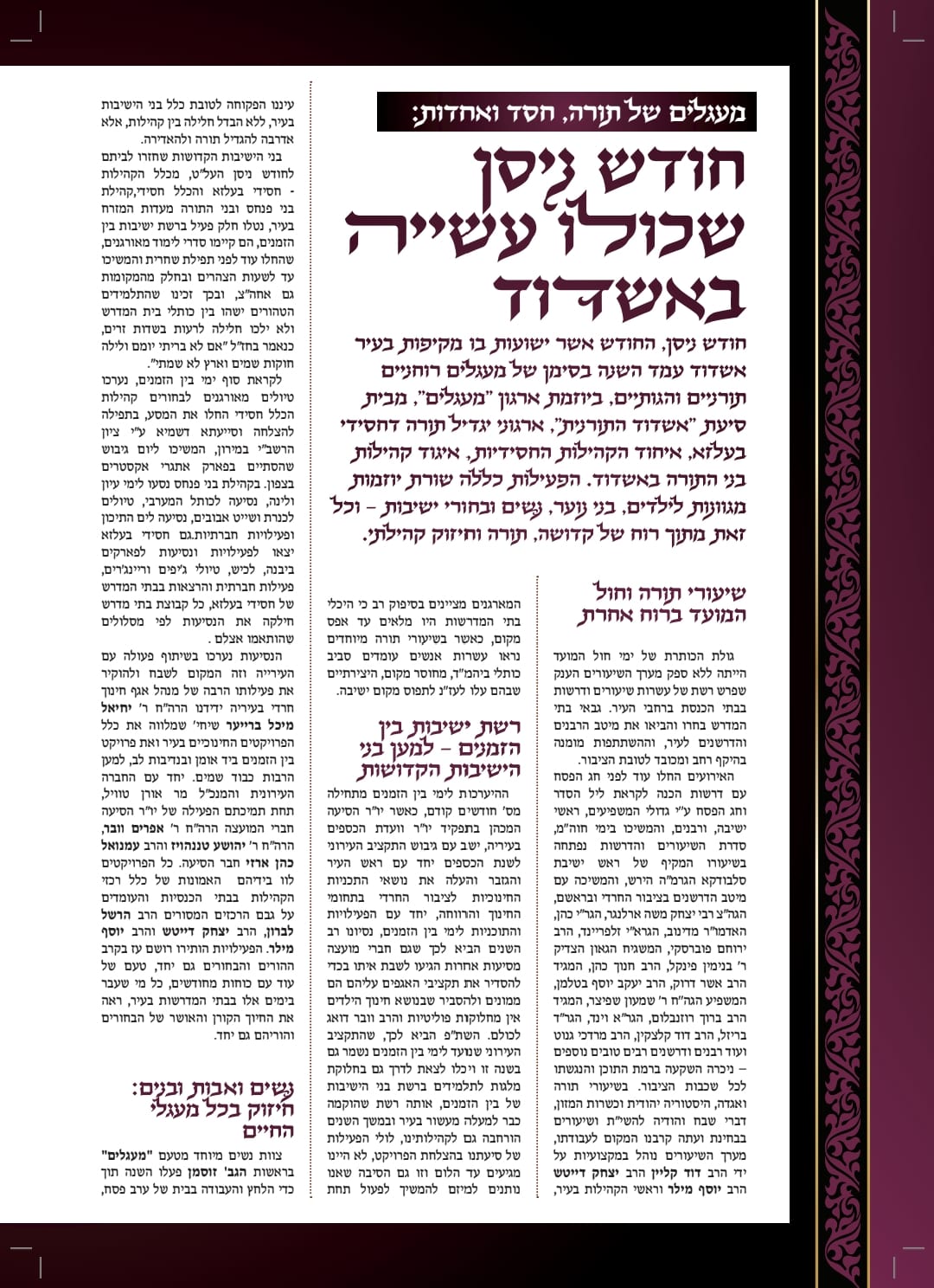 עשיה מבורכת, לכווולם: בסיעת 'אשדוד התורנית' מציגים את הפעילות המבורכת שהתקיימה במסגרת 'מעגלים' בימי חול המועד פסח, בחבורת מהודרת שהופצה אתמול בכל ריכוזי הציבור החרדי בעיר.