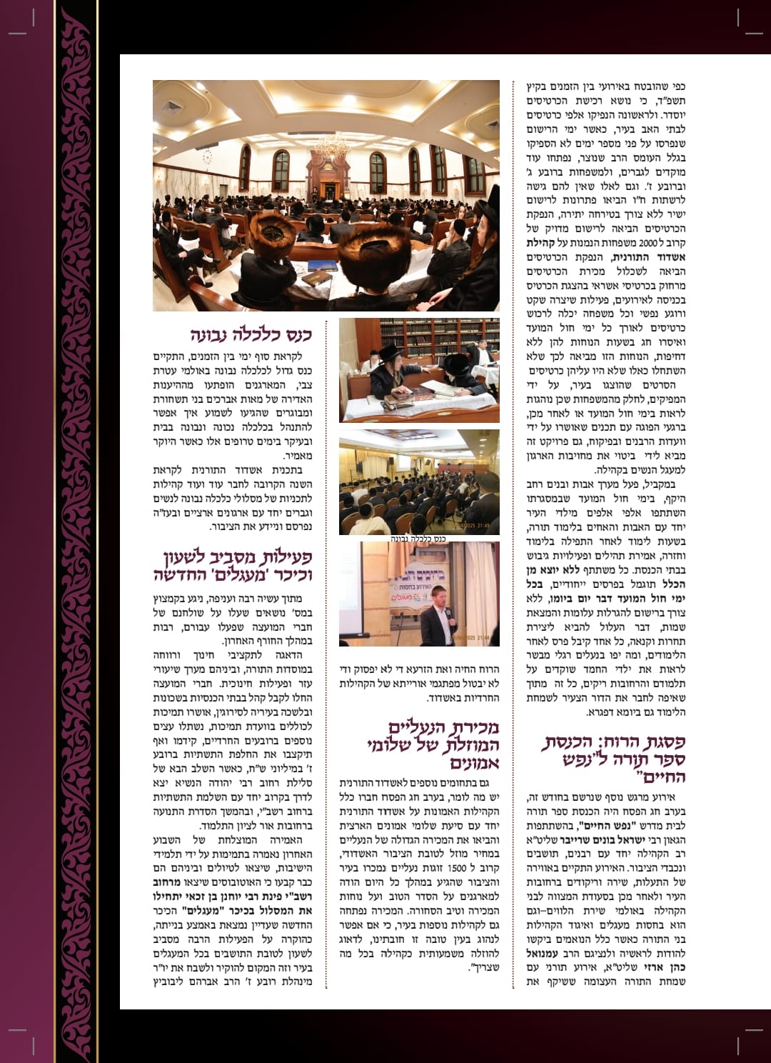 החוברת משקפת את הפעילות שהתקיימה הן במסגרת שיעורי התורה לגברים, בכל בתי הכנסת של חסידי בעלזא, של הציבור הכלל חסידי ושל הציבור הליטאי בעיר, לצד הפעילות המושקעת שיועדה לבחורים במסגרת ישיבת בין הזמנים.