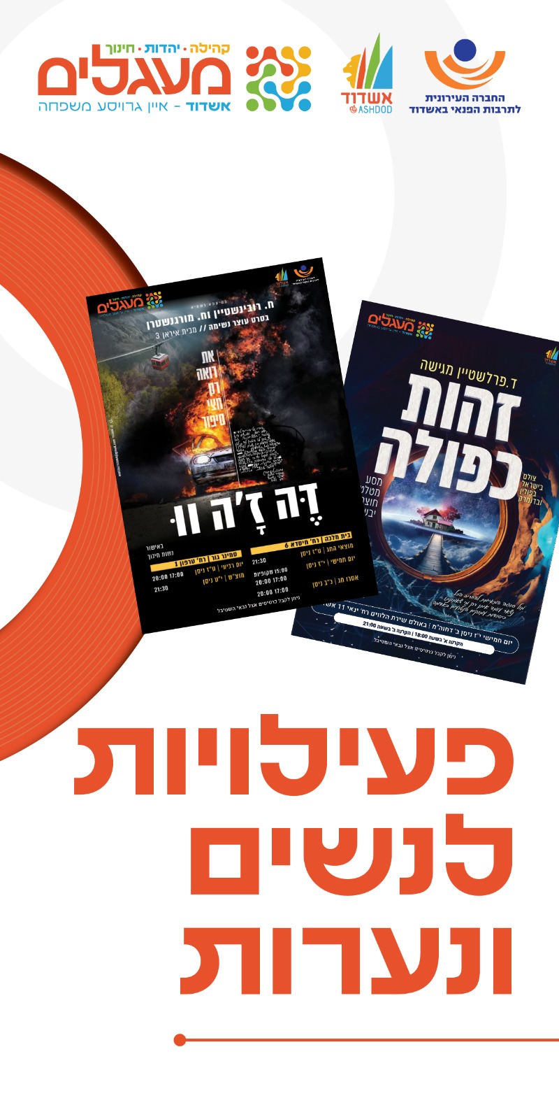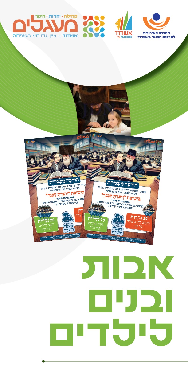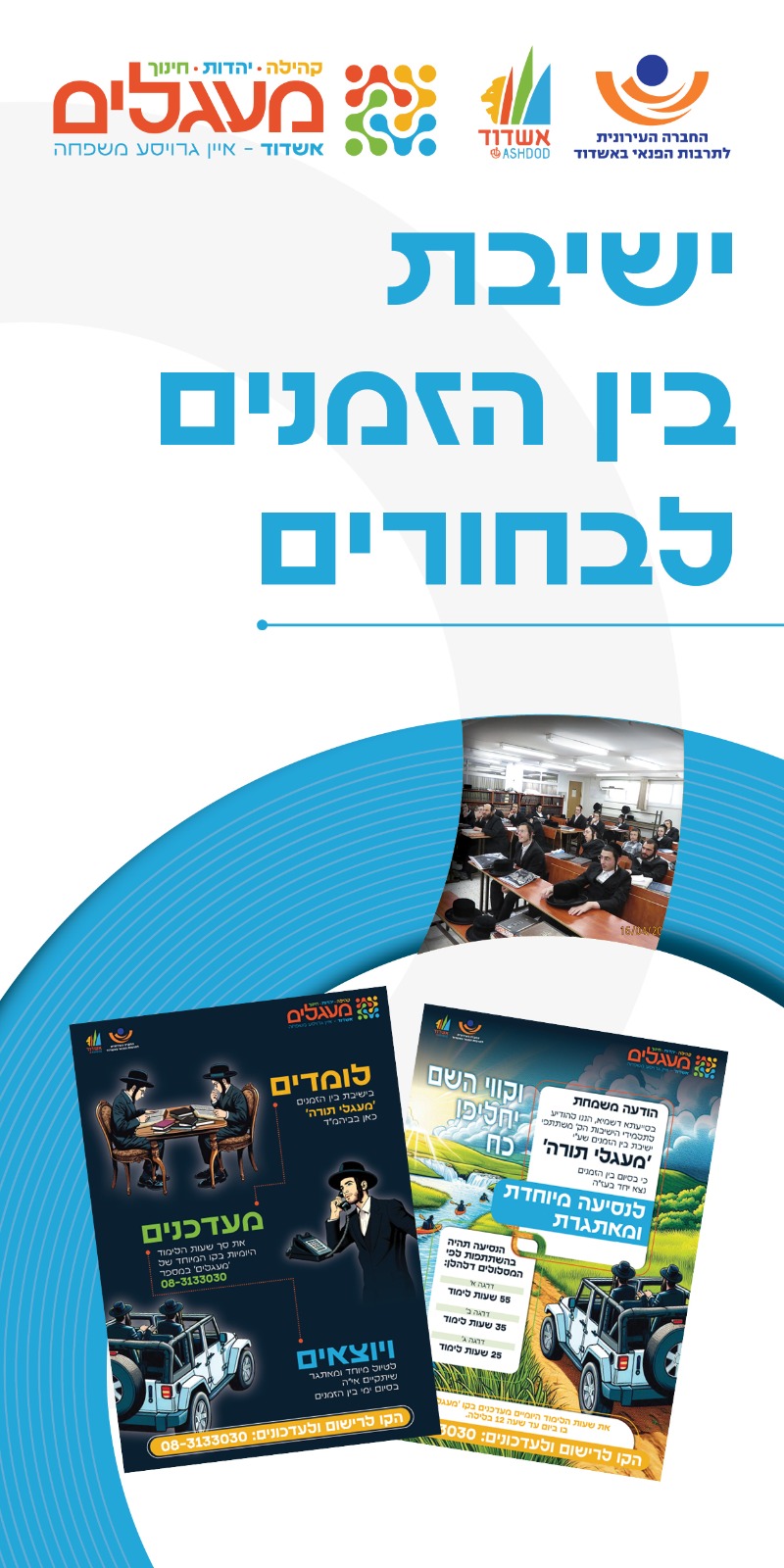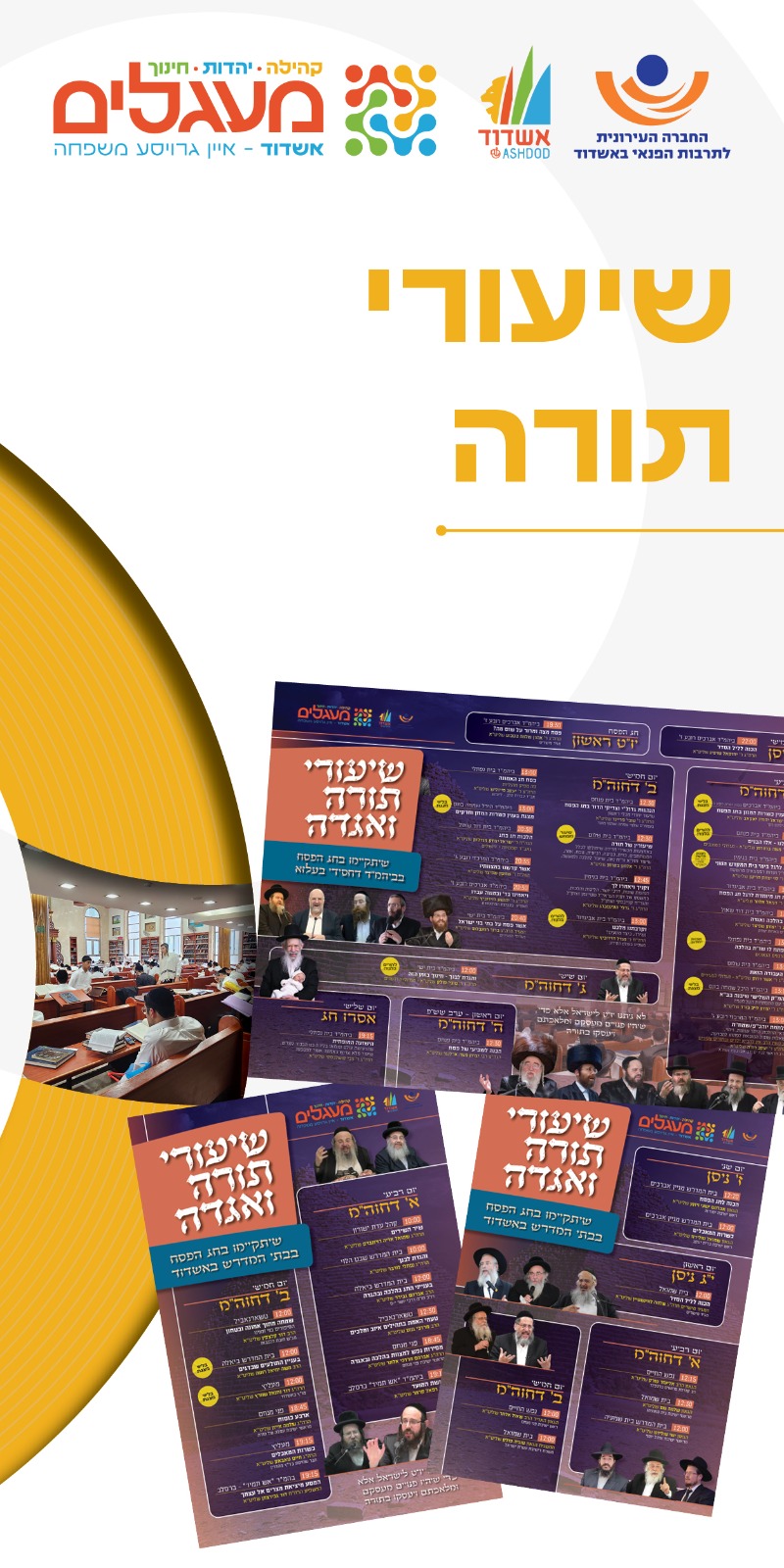 שיעורים מעגליםמעגלים לכווולם: בשורת 'מעגלים' מבית 'אשדוד התורנית' יצאה לדרך, כאשר לראשונה בהיסטוריית אשדוד החרדית יהנו כלל התושבים מפעילות מגוונת, לברים, נשים וילדים, שתתקיים בכל בתי הכנסת ובכל החוגים.