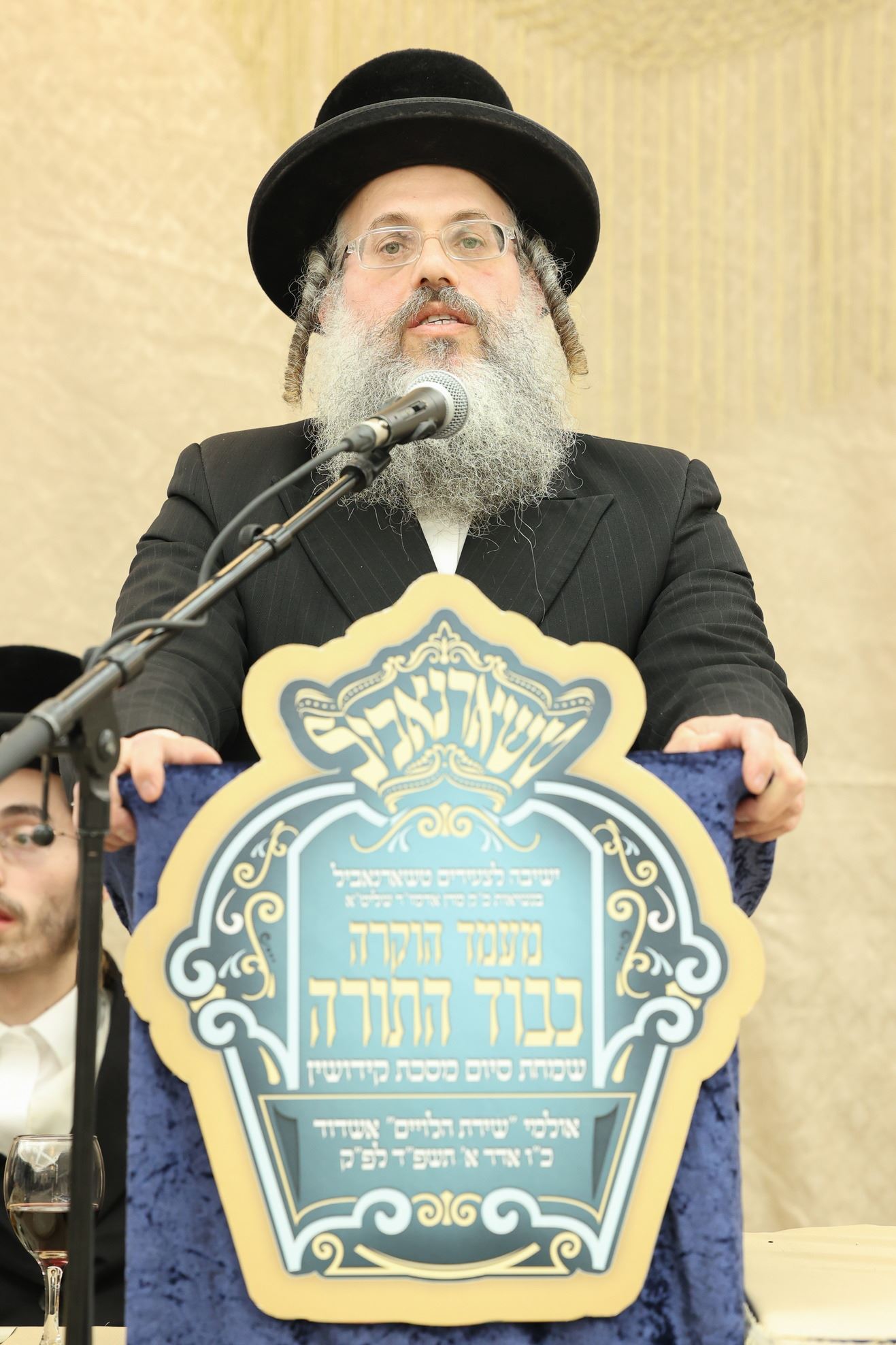 עם גמר המבחן נערך ה'סיום' על מסכת קידושין, כאשר כ"ק אדמו"ר מטרעבישאן שליט"א כובד באמירת קדיש הגדול. מיד לאחר מכן נערך מעמד 'לחיים' ע"י כ"ק מרן האדמו"ר מטשארנאביל שליט"א אשר השפיע את ברכת קדשו לכל הנאספים לכבודם של מקדשי יומם וליל ביגיעת התורה בהתמדה. לאחר מכן עבור להתברך בחורי הישיבה עמלי התורה, והקהל פצח בריקוד ספונטני של עוז וחדוה לכבוד גומרה של תורה.