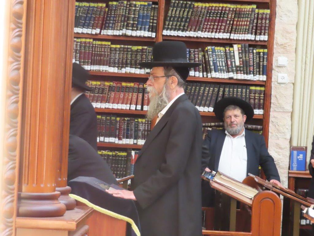 לפני התיבה בתפילת מעריב עבר יד ימינו ונאמן ביתו הרה"ג ר' משה ליפשיץ שליט"א, לאחר עלינו לשבח, קראו פרק תהילים ולאחריה אמרו ברכת 'מי שבירך' כשכל העיניים נשואות למזרח לצד ארון הקודש למוצא פיו של הגאב"ד שליט"א.