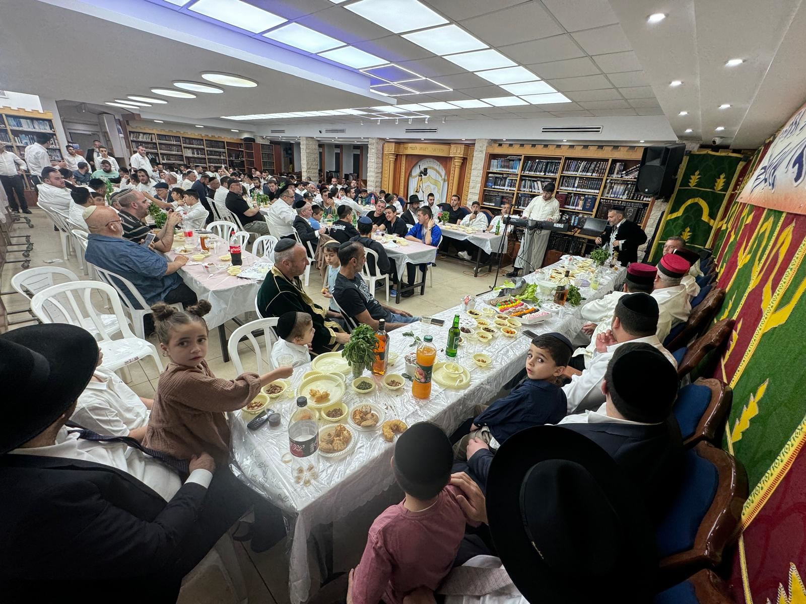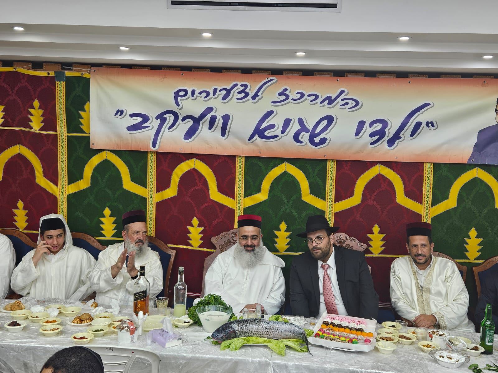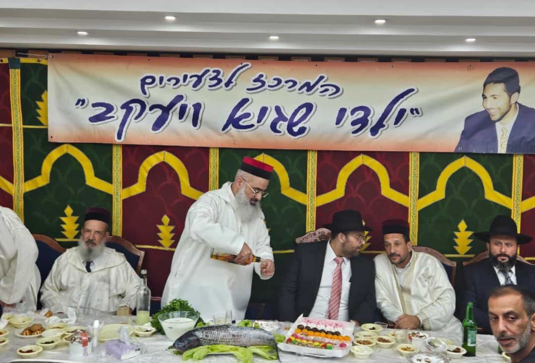 על שולחן המרכזי הונח מגש ענק ובו דג גדול כשלצידו עלי ירק, קערת ה"זאבאן", עוגיות קוקוס מכל הצבעים כשבמרכז הגיעו בזה אחר זה ערימות של מופליטות טבולות בדבש, אותם חילק הרב אילן גוזל לכל הבאים עם ברכת "תרבחו ותסעדו".