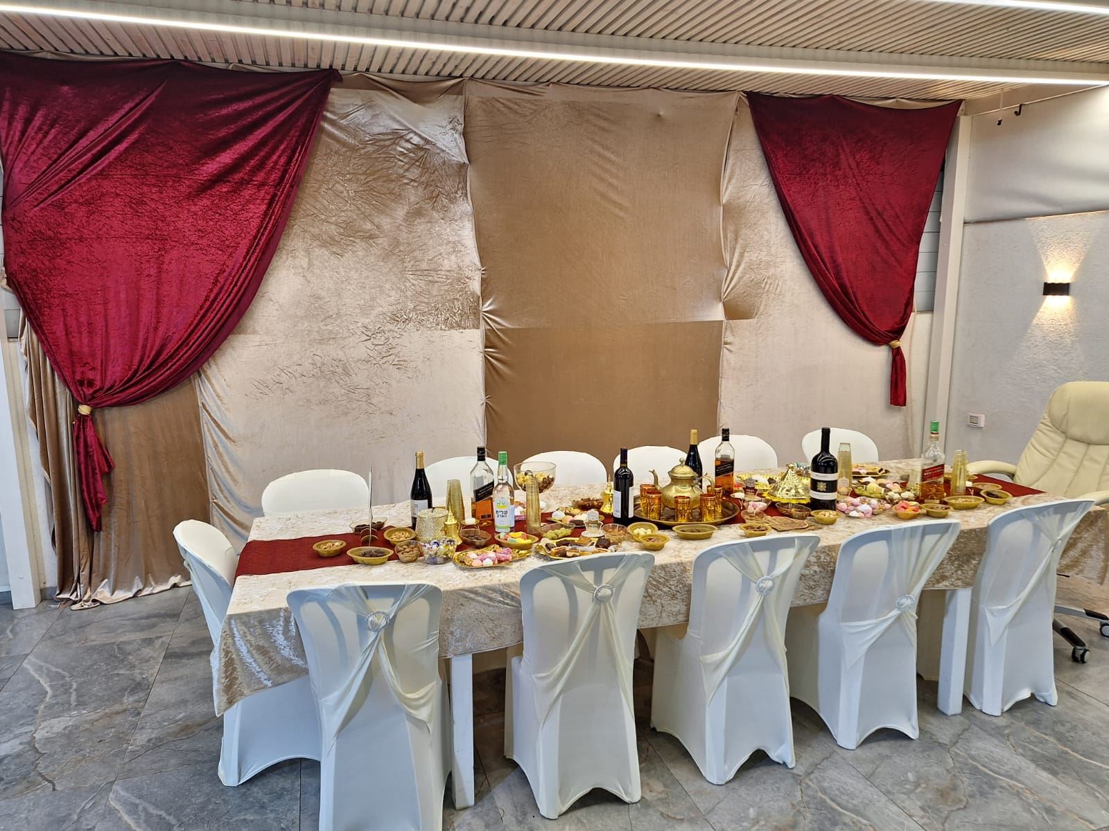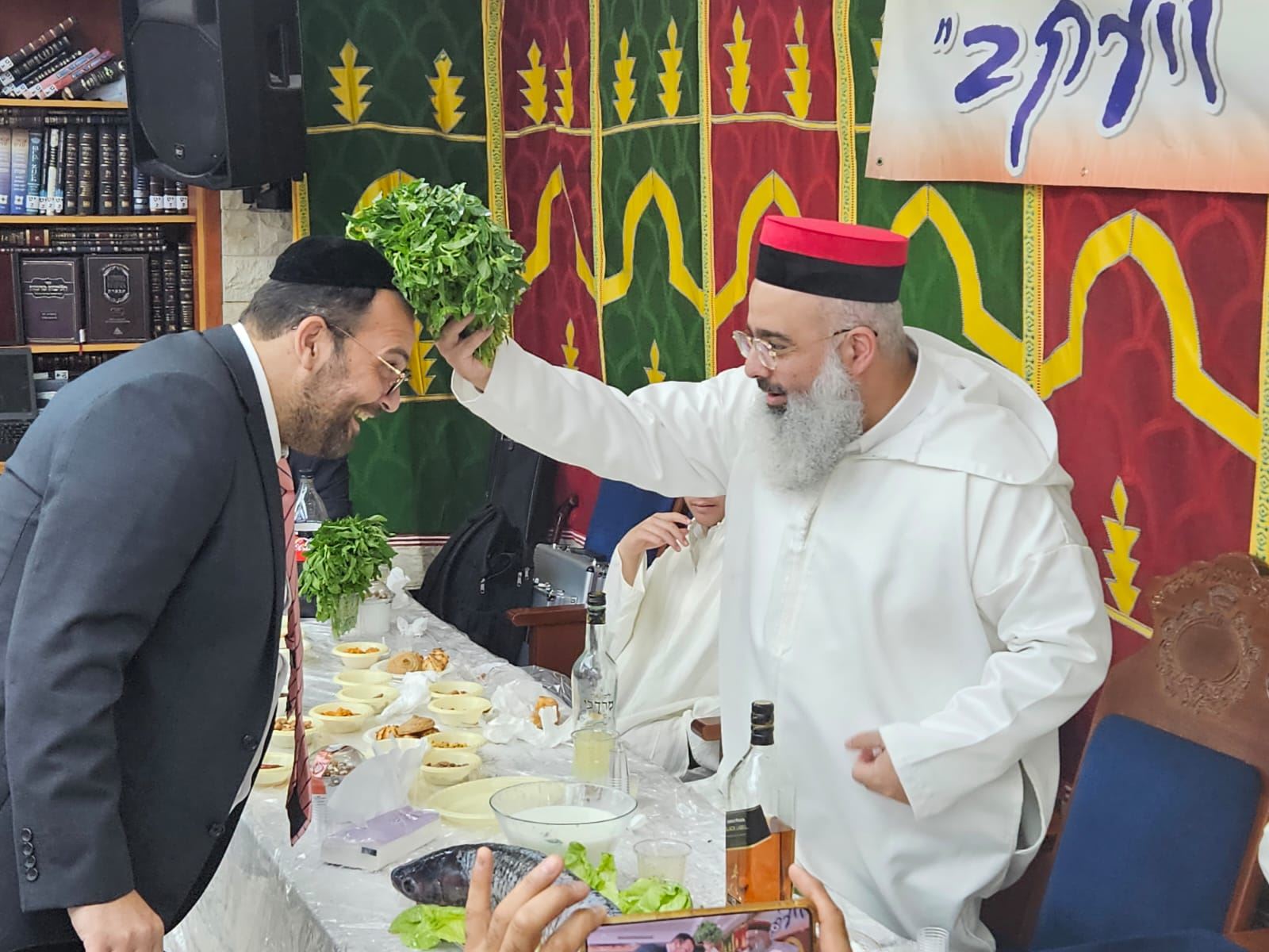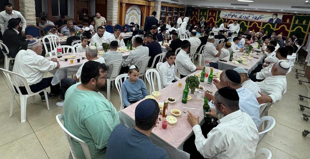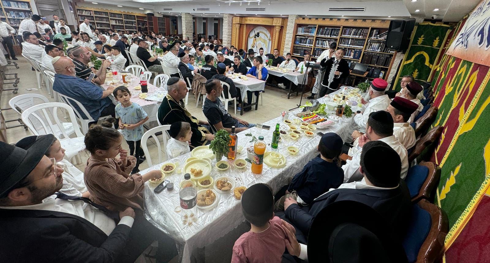על שולחן המרכזי הונח מגש ענק ובו דג גדול כשלצידו עלי ירק, קערת ה"זאבאן", עוגיות קוקוס מכל הצבעים כשבמרכז הגיעו בזה אחר זה ערימות של מופליטות טבולות בדבש, אותם חילק הרב אילן גוזל לכל הבאים עם ברכת "תרבחו ותסעדו".