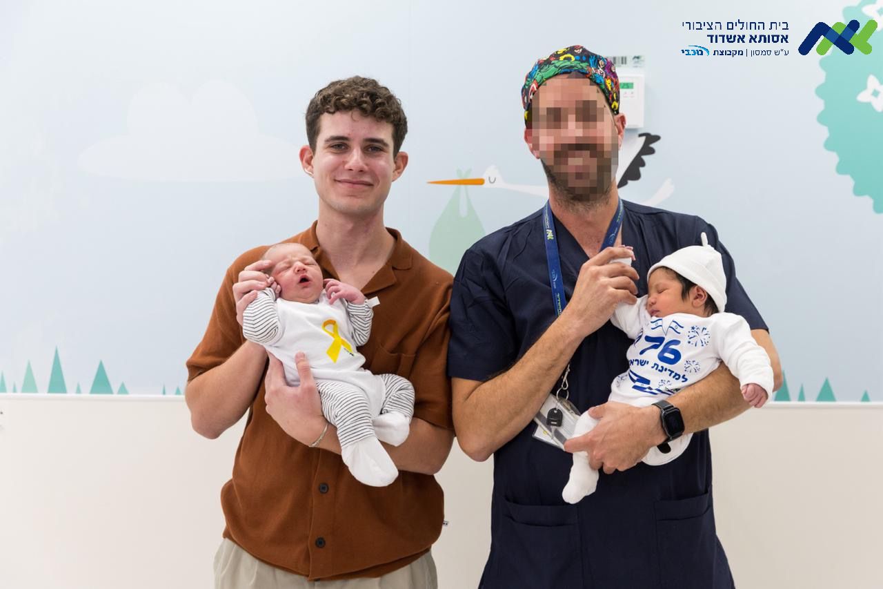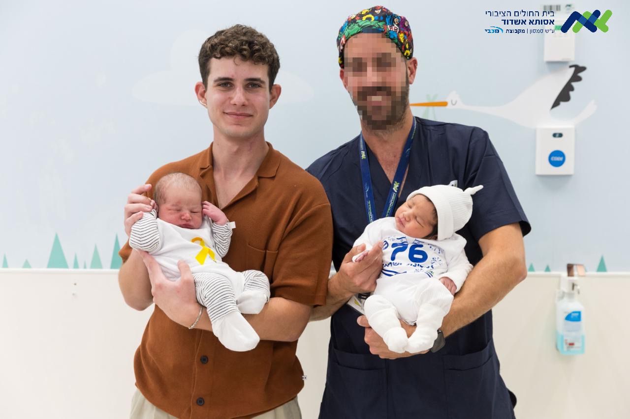 מרגש: הלוחם שנפצע והרופא שהצילו עם תינוקות בני יומם הלבושים בסמלי היום
