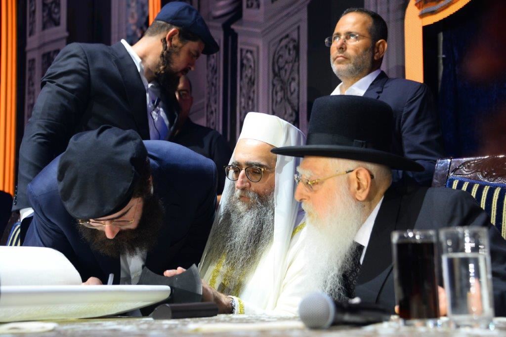 בכנס הענק שנערך במעמד אלפים בהיכל מנורה בת"א לרגל סיום ספר הזוהר וכתיבת ס"ת, בראשותו של האדמו"ר רבי יאשיהו פינטו שליט"א ואביו רבה של אשדוד, קיבלו האלפים עול מלכות שמים. צפו