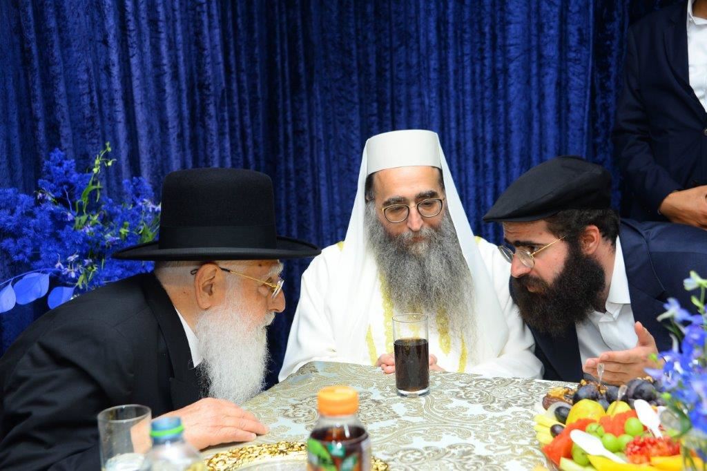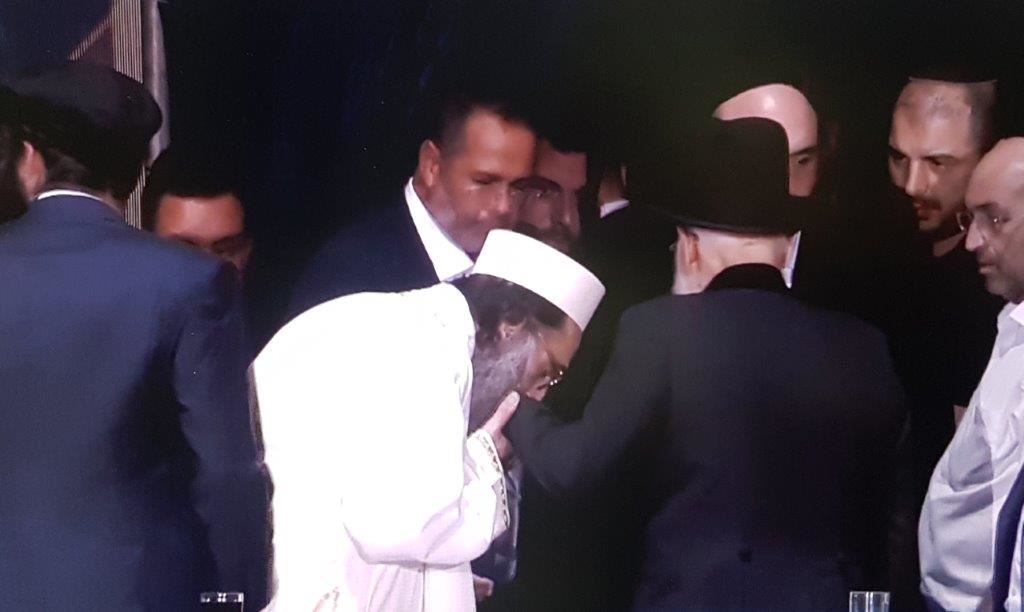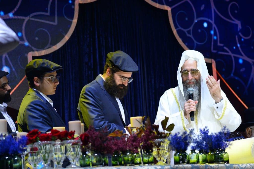 שמחה והתרגשות רבה אחזה באלפים כאשר המנחה הודיע על כניסתם לאולם של הגה"צ רבי חיים שמעון פינטו שליט"א ובנו האדמו"ר רבי יאשיהו פינטו שליט"א.
