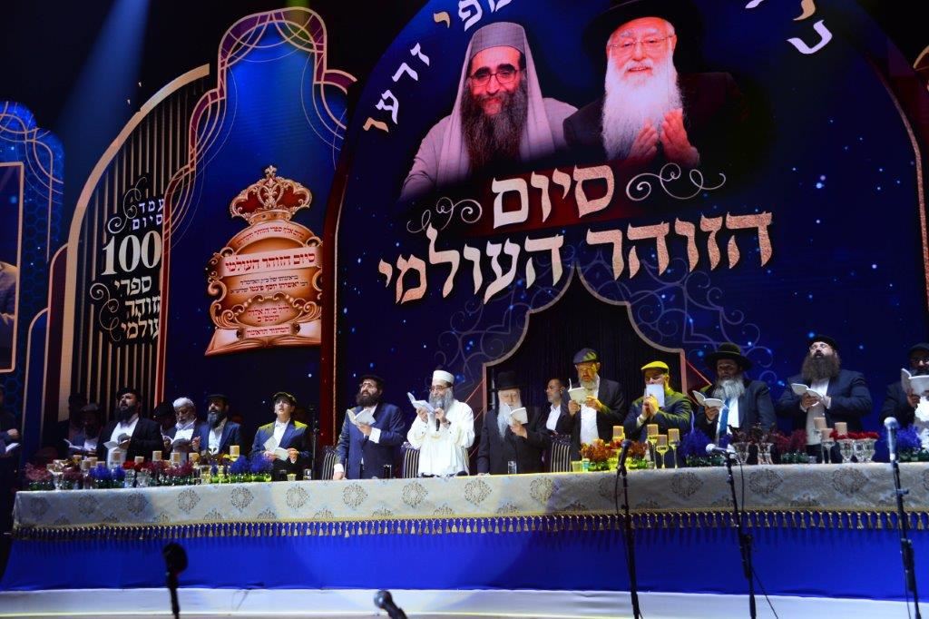 רבבה גדשו את איצטדיון "היכל מנורה" ביד אליהו בתל אביב לכבוד סיום הזוהר הקדוש מעל אלף פעמים, במעמד הגה"צ רבי חיים שמעון פינטו שליט"א רבה של אשדוד וקרית מלאכי ובנו האדמו"ר רבי יאשיהו פינטו שליט"א ראב"ד מרוקו.