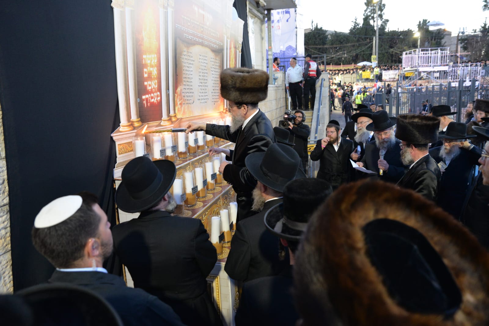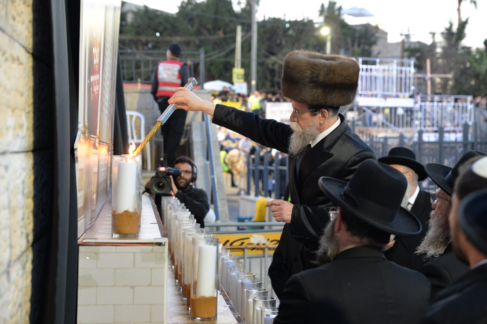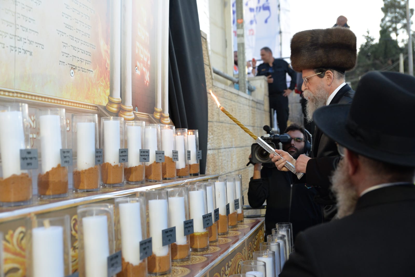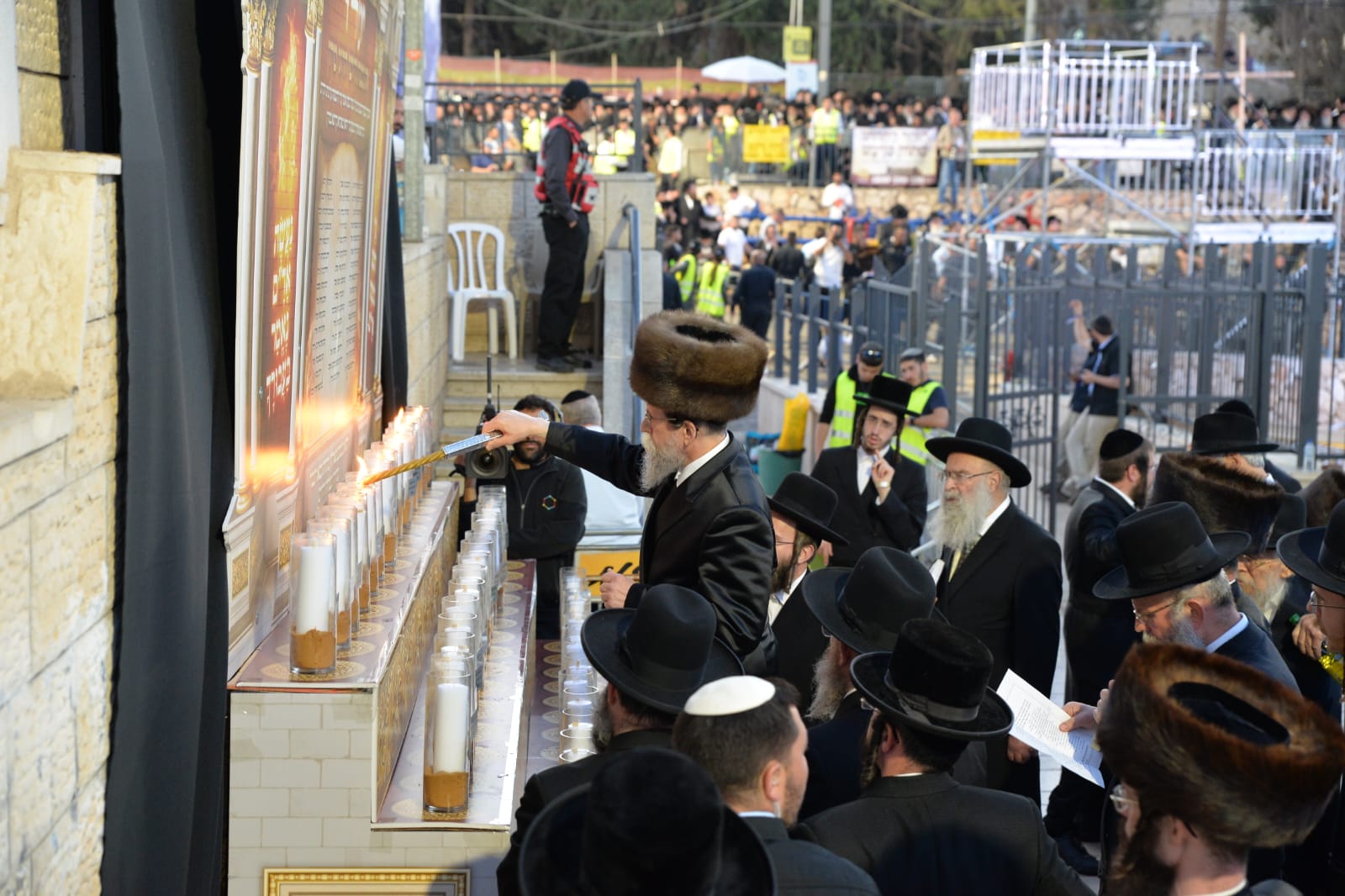זכרם של מ"ה הרוגי מירון אשתקד על במעמד ההדלקה המסורתי במירון. האדמו"ר מבויאן העלה את הנרות והציבור דמע