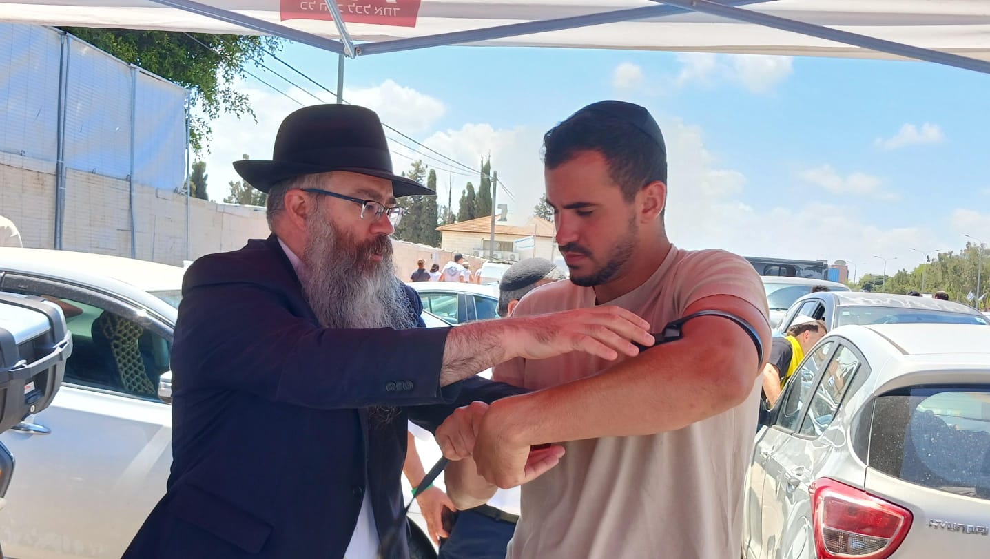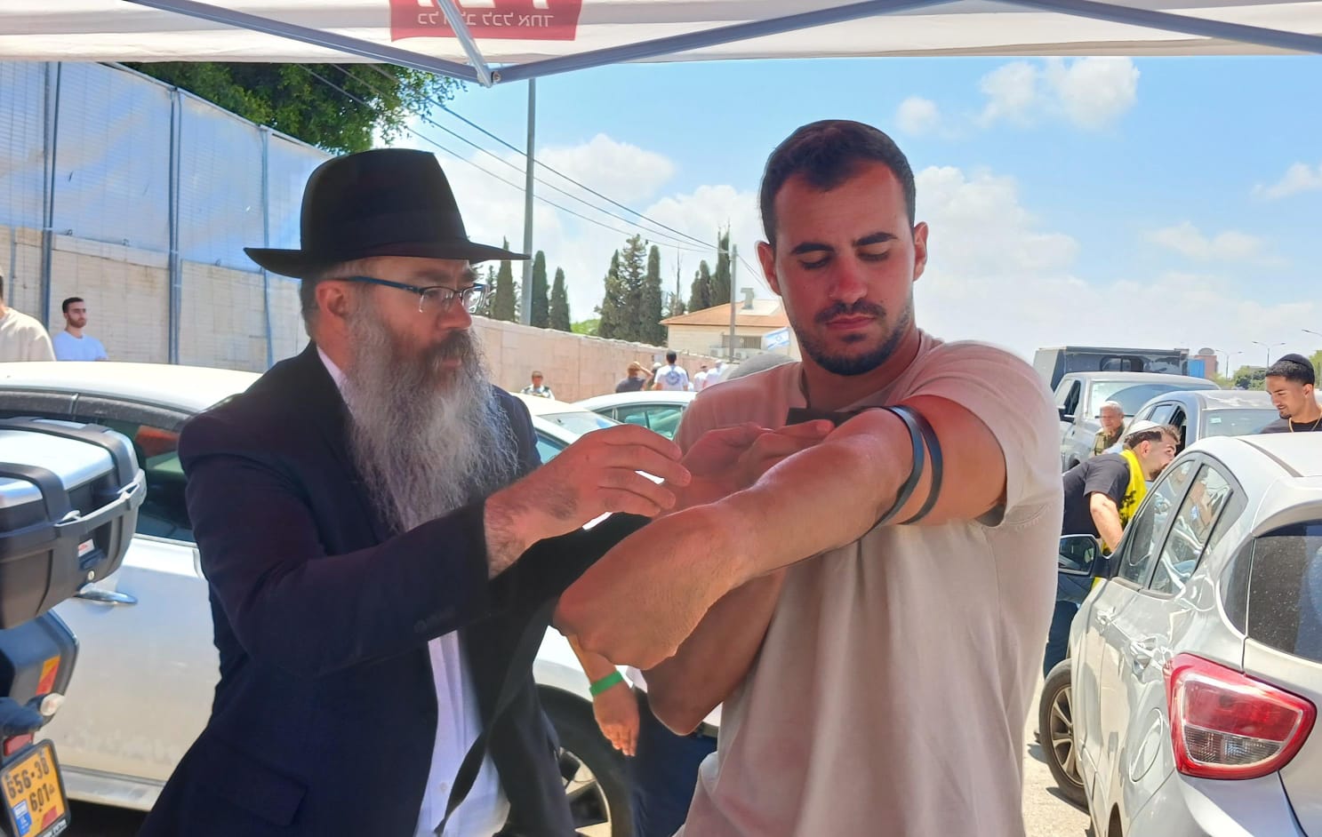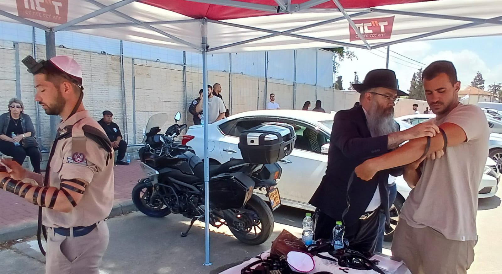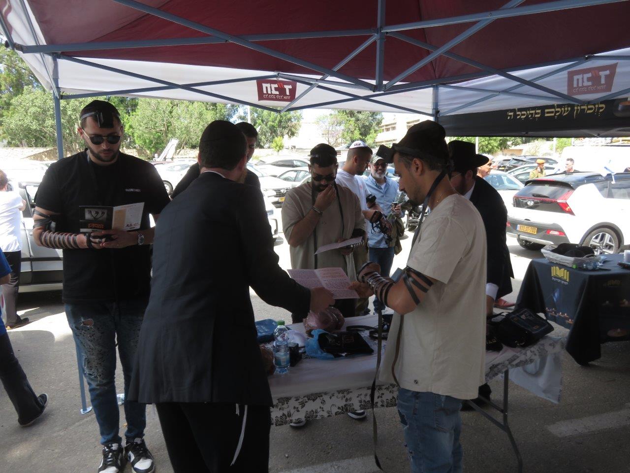 זיכוי הרבים: מבצע הנחת תפילין לכל הבאים ב"יום הזיכרון" בכניסה לבית העלמין ע"י שליחי הרבי מליובאוויטש.