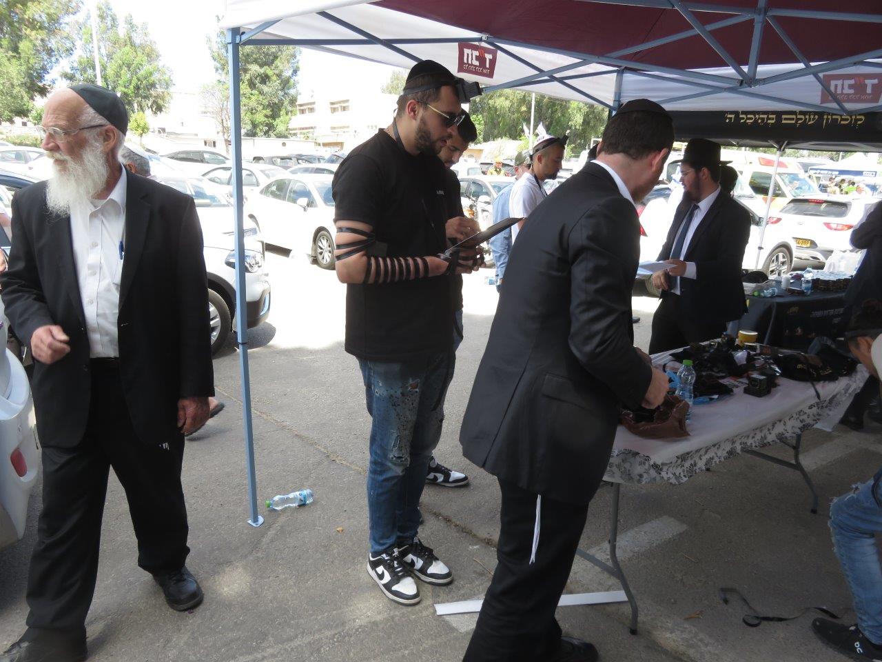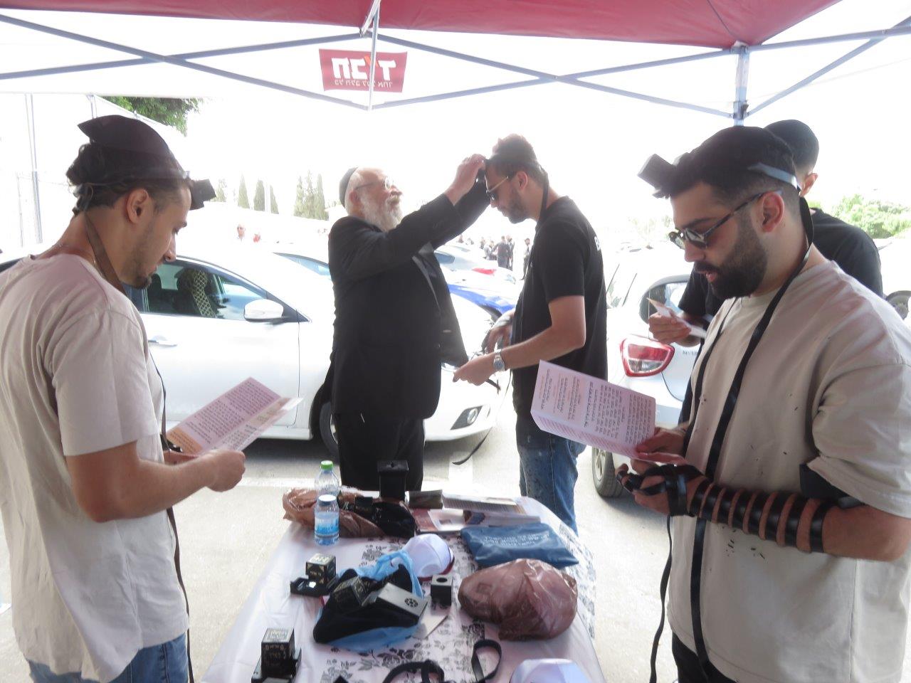 כמידי שנה שליחי הרבי מליובאוויטש בעירנו מקדמים את פני הבאים, החל משעות הבוקר המוקדמות בבית העלמין הצבאי כשהם מציעים לכל הבאים להניח תפילין.
