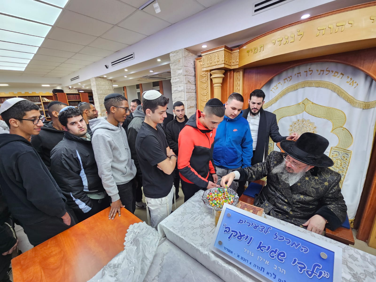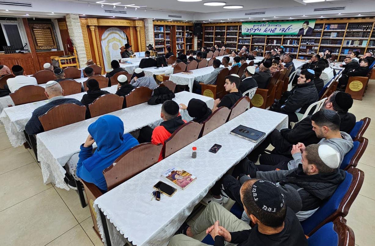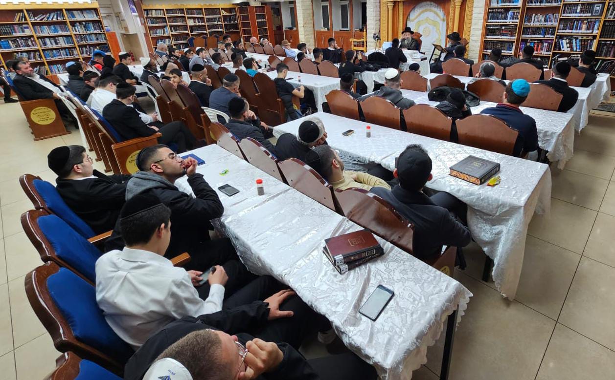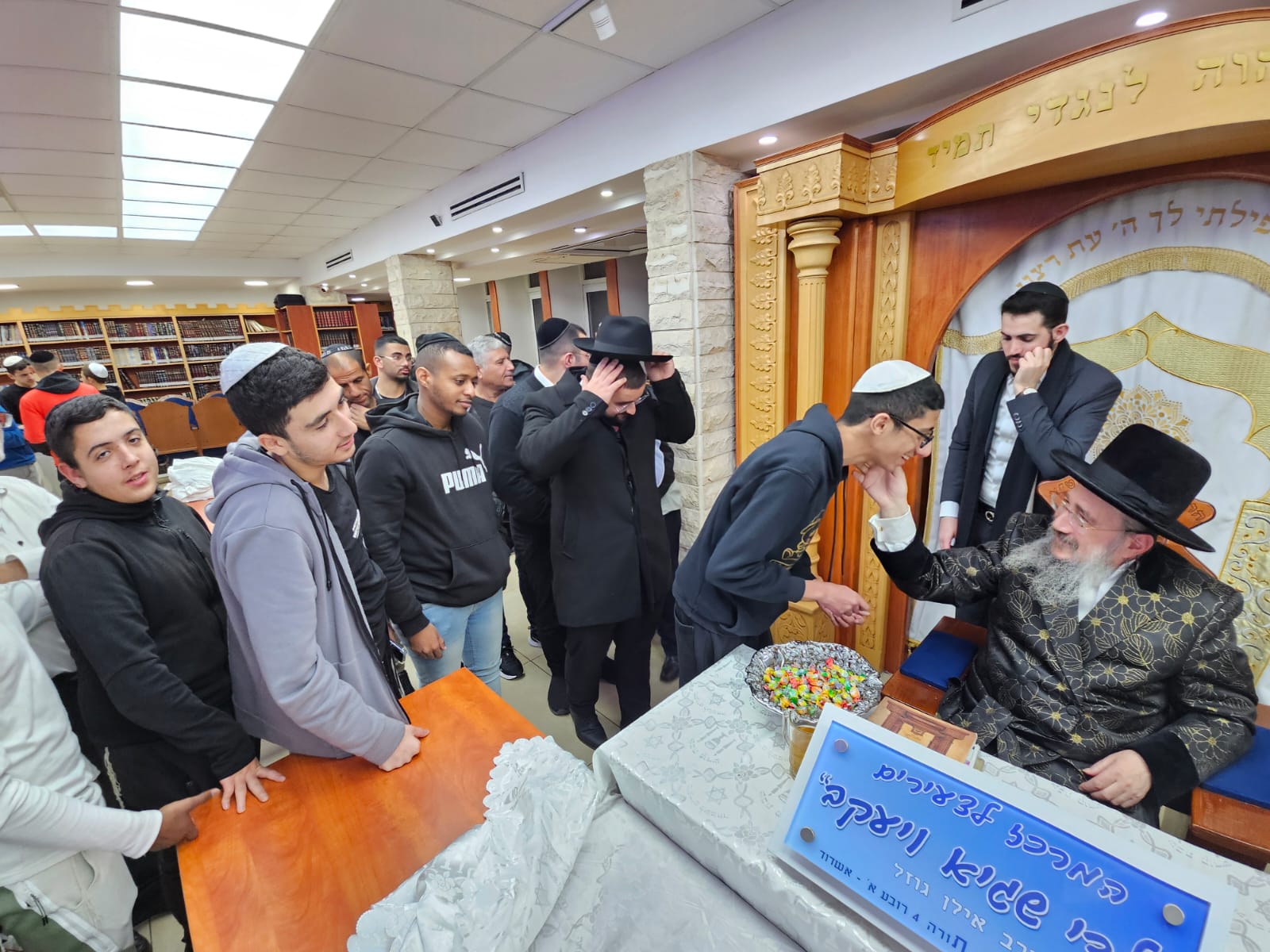 מאות צעירים גדשו את בית המדרש המרכז לצעירים "ילדי שגיא ויעקב" ברובע א' במוצאי שבת לקראת בואו של נכדו של סידנא בבא סאלי זצוק"ל האדמו"ר הרה"צ רבי שלמה בוסו שליט"א רב ק"ק "תפארת לישראל" שהגיע במיוחד.