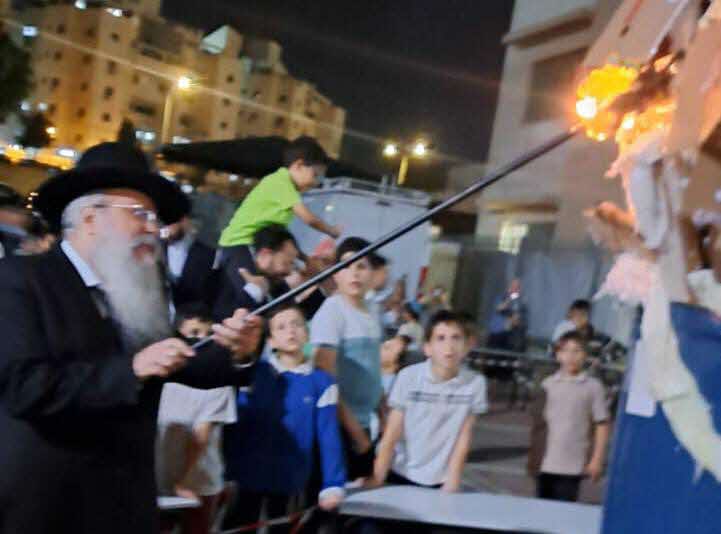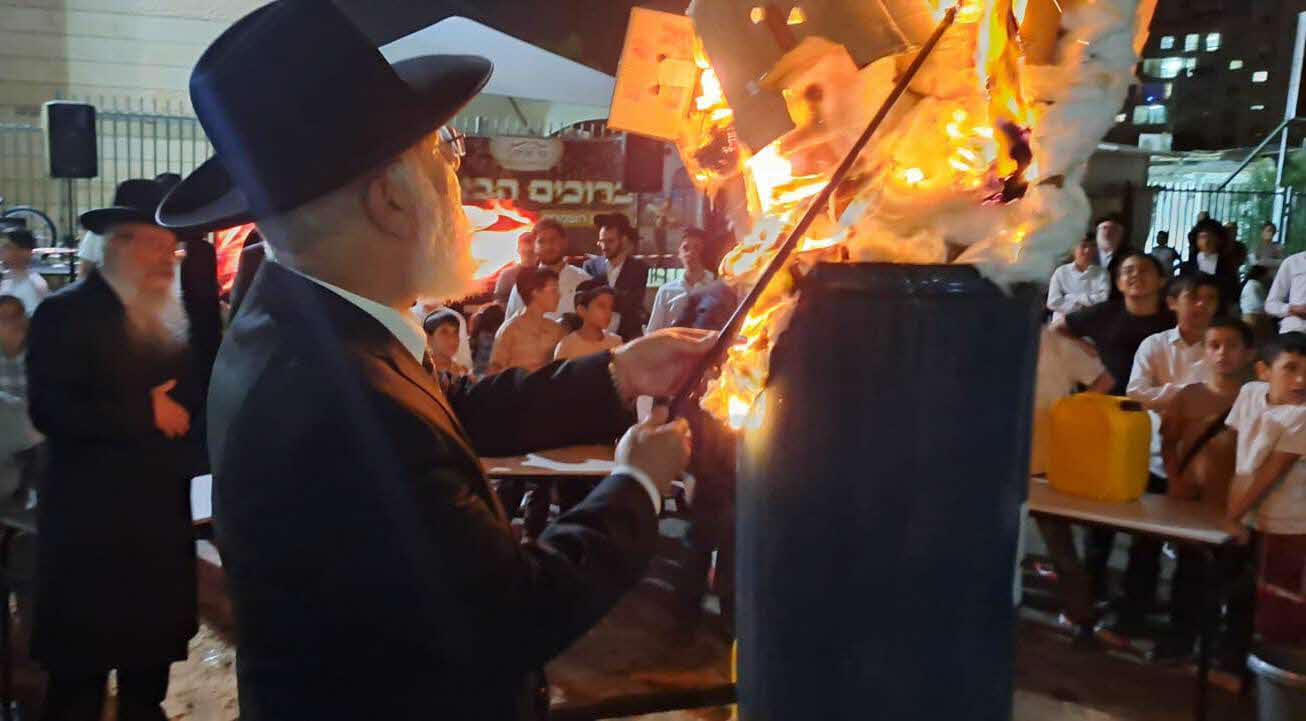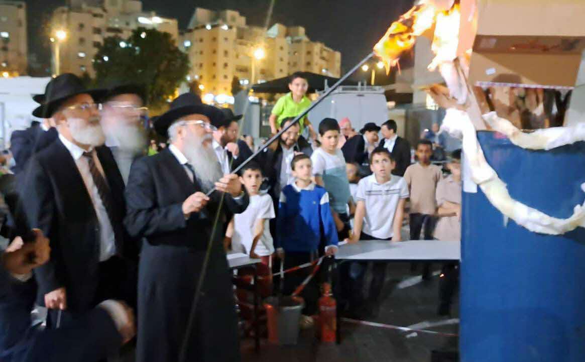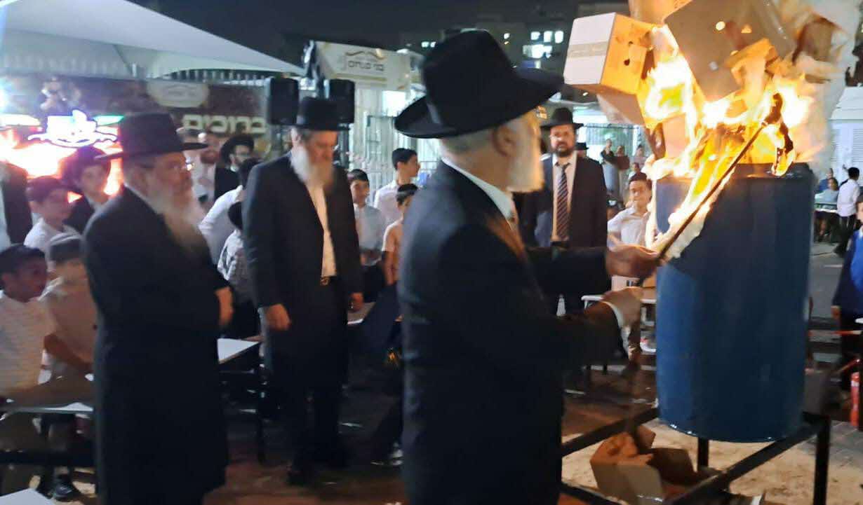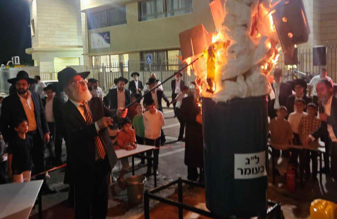 ברחבה מול התלמוד תורה, הוכנה המדורה בתוך חבית ובשמחה גדולה השתתפו כולם בהכנתה, כאשר הרבנים וההורים משתתפים ביצקת השמן.