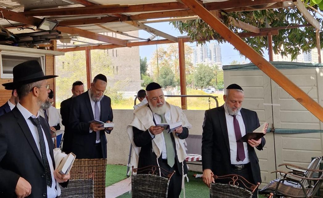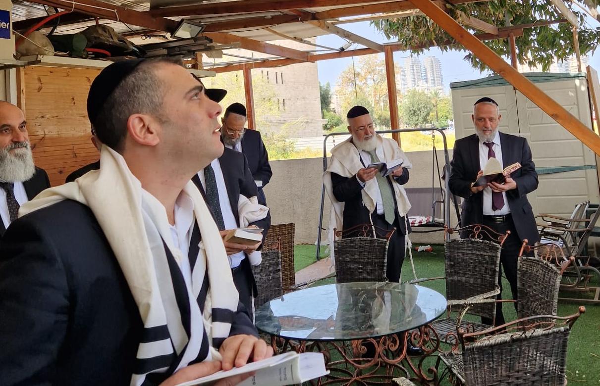 המתפללים התארחו בחצר אחד החברים ובירכו ברכת האילנות. צפו