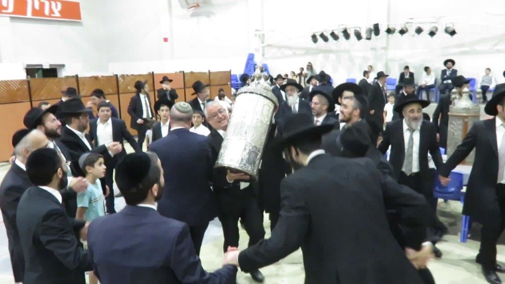 לכבודה של תורה: אלפים שמחו עם התורה במוצאי החג, לעת ההקפות השניות, במעמד ההקפות שהתקיים בקהילת 'חניכי הישיבות' כאשר מפאת הציבור הגדול אשר גודל מידי שנה בלעה"ר, ערכו את את המעמד באולם שע"י בית מלכה ברובע ז'ה.